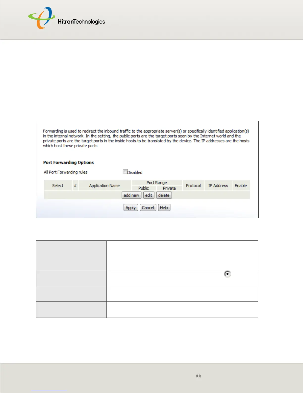 All Port Forwarding Rules Use this field to turn port forwarding on or off.