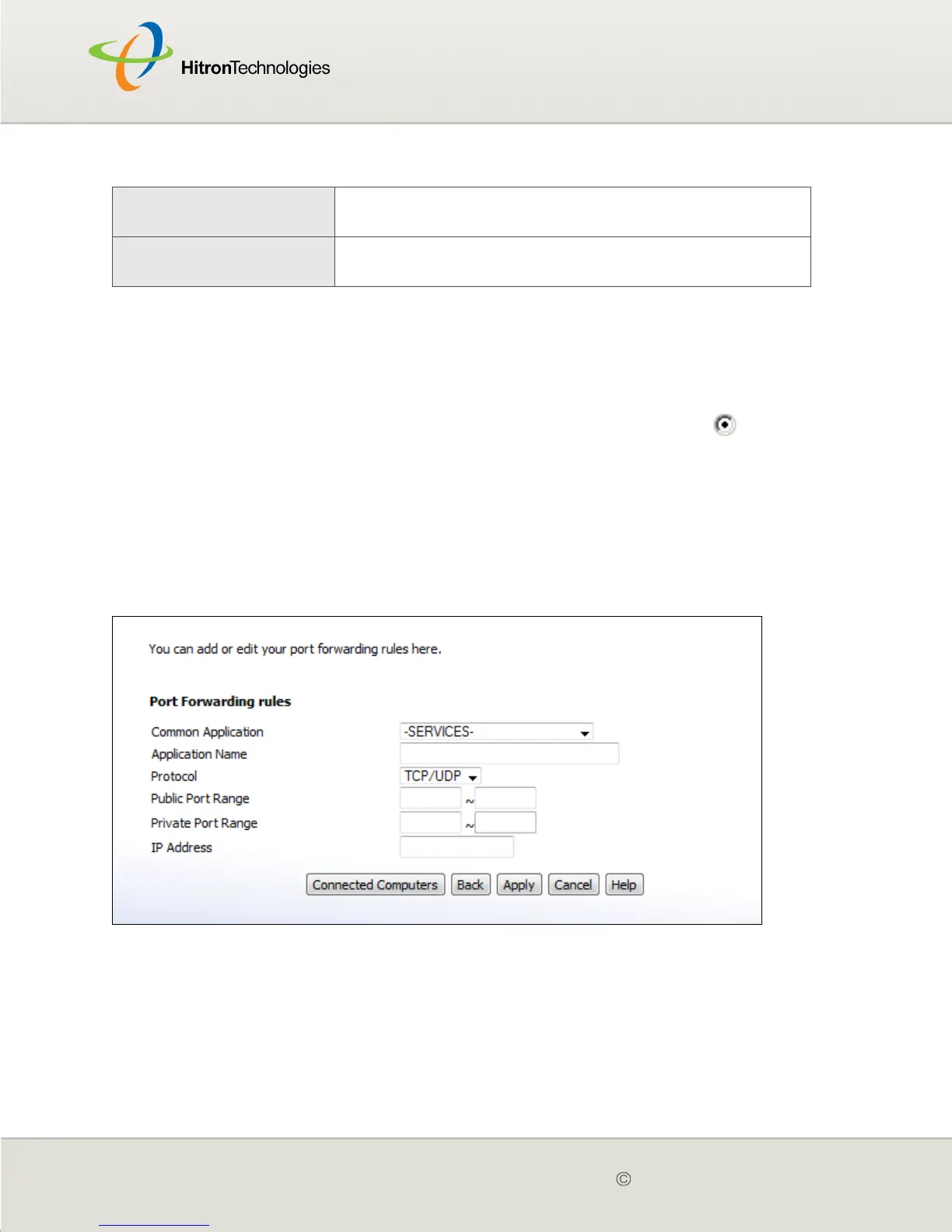 To edit an existing port forwarding rule, select the rule’s radio button ( ) in the