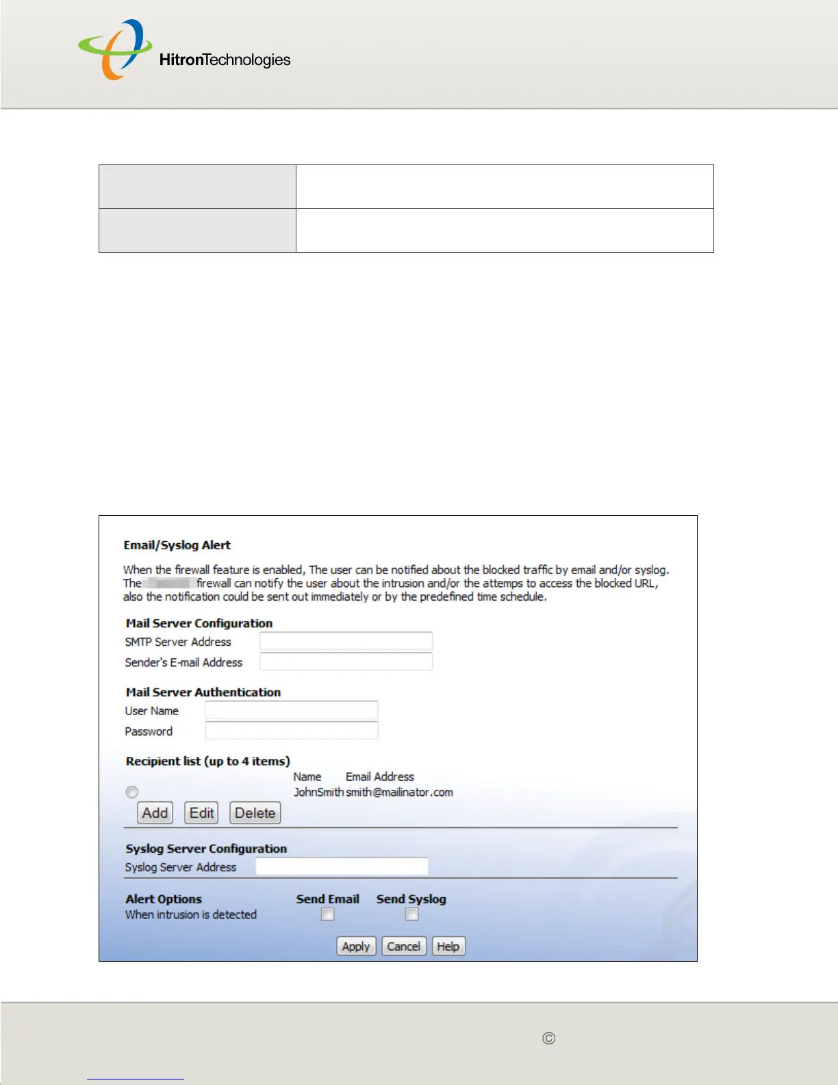 5.4 THE EMAIL / SYSLOG ALERT SCREEN