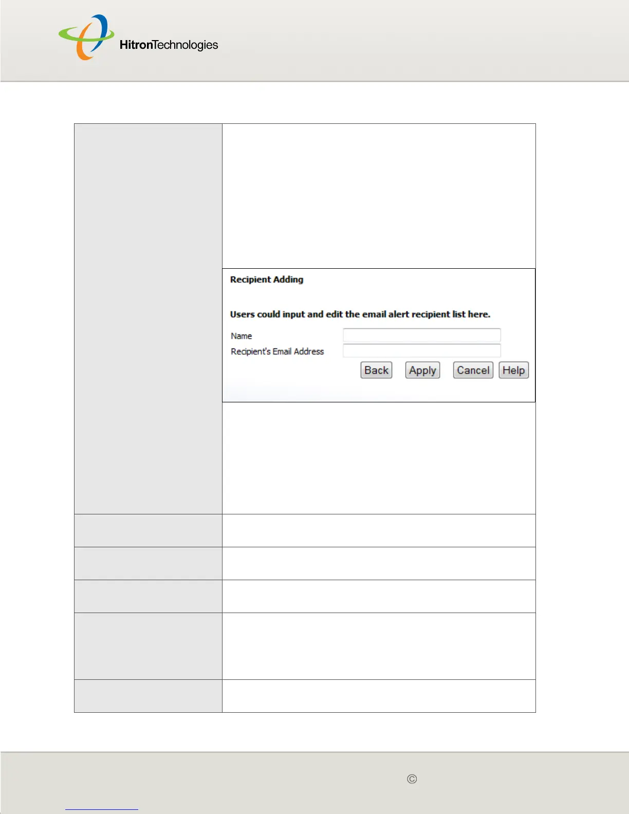 Table 26: The Parental Control > Email / Syslog Alert Screen (continued)