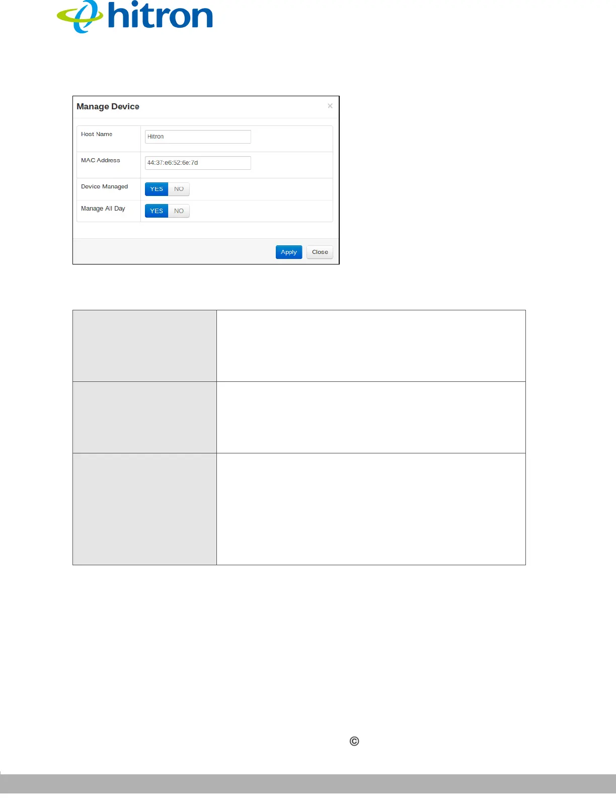 Device Managed Use this field to define whether the device should have