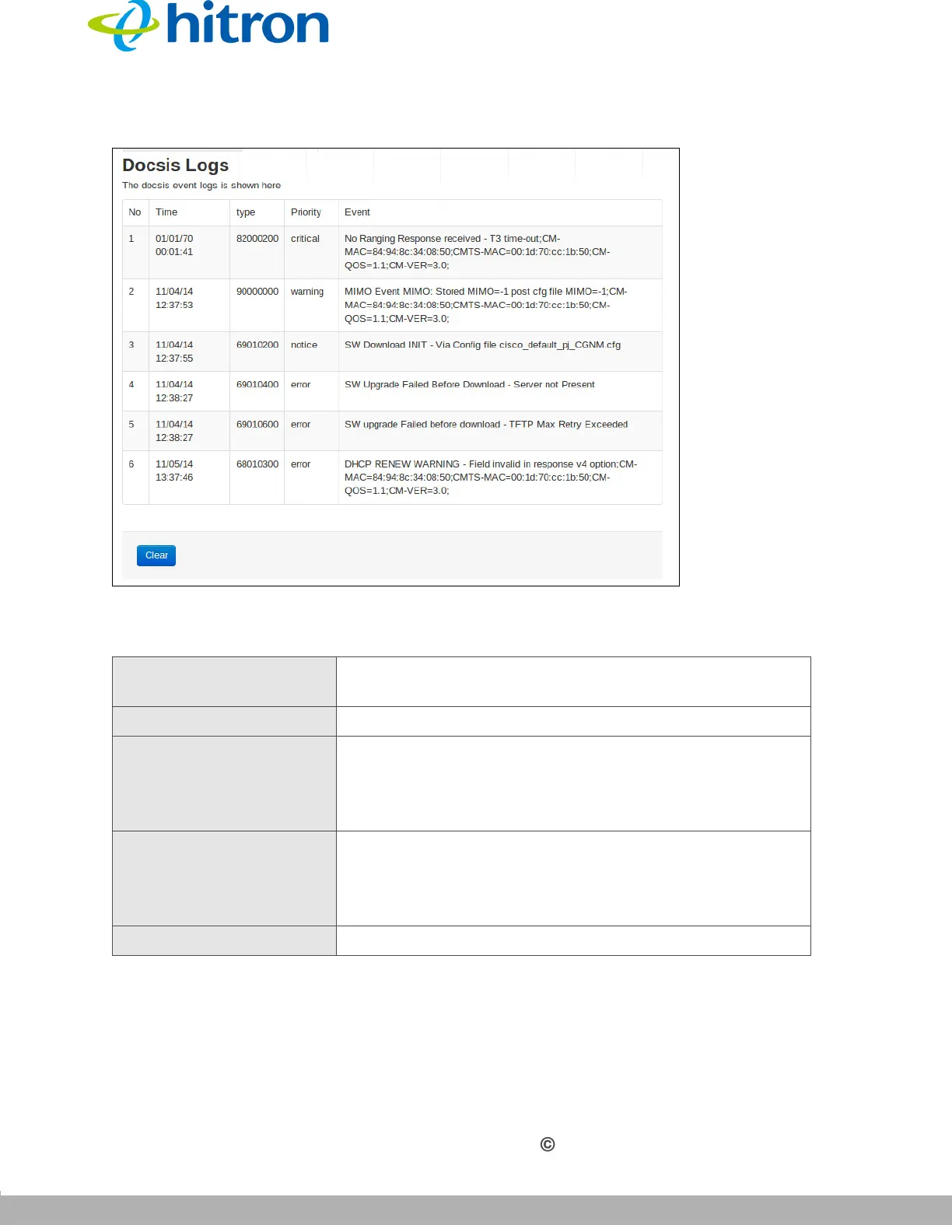 Priority This displays the priority of the DOCSIS event.