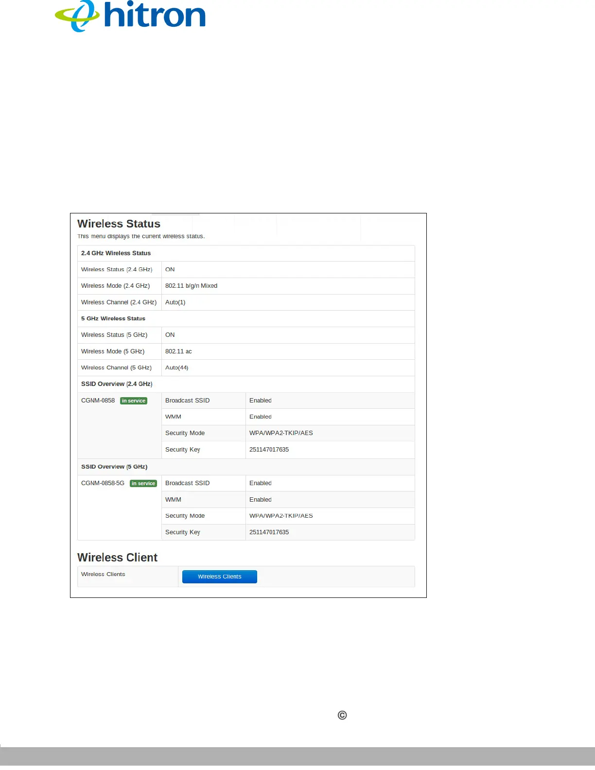 Figure 18: The Status: Wireless Screen