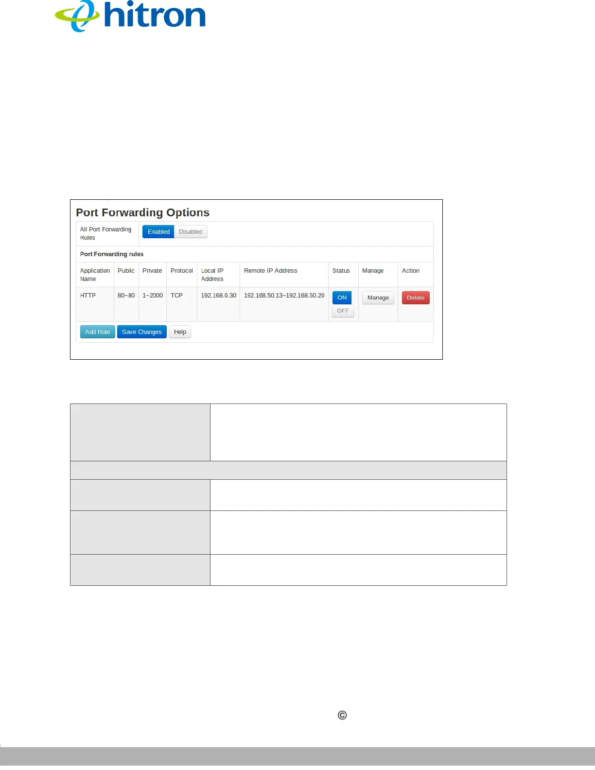All Port Forwarding Rules Use this field to turn port forwarding on or off.
