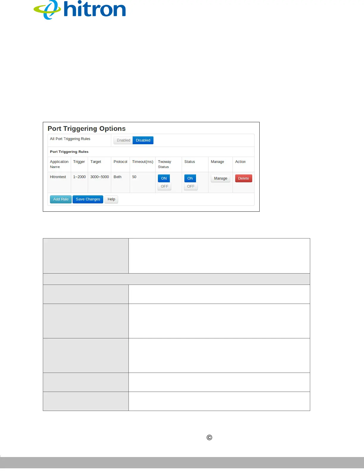 All Port Triggering Rules Use this field to turn all port triggering rules on or off.