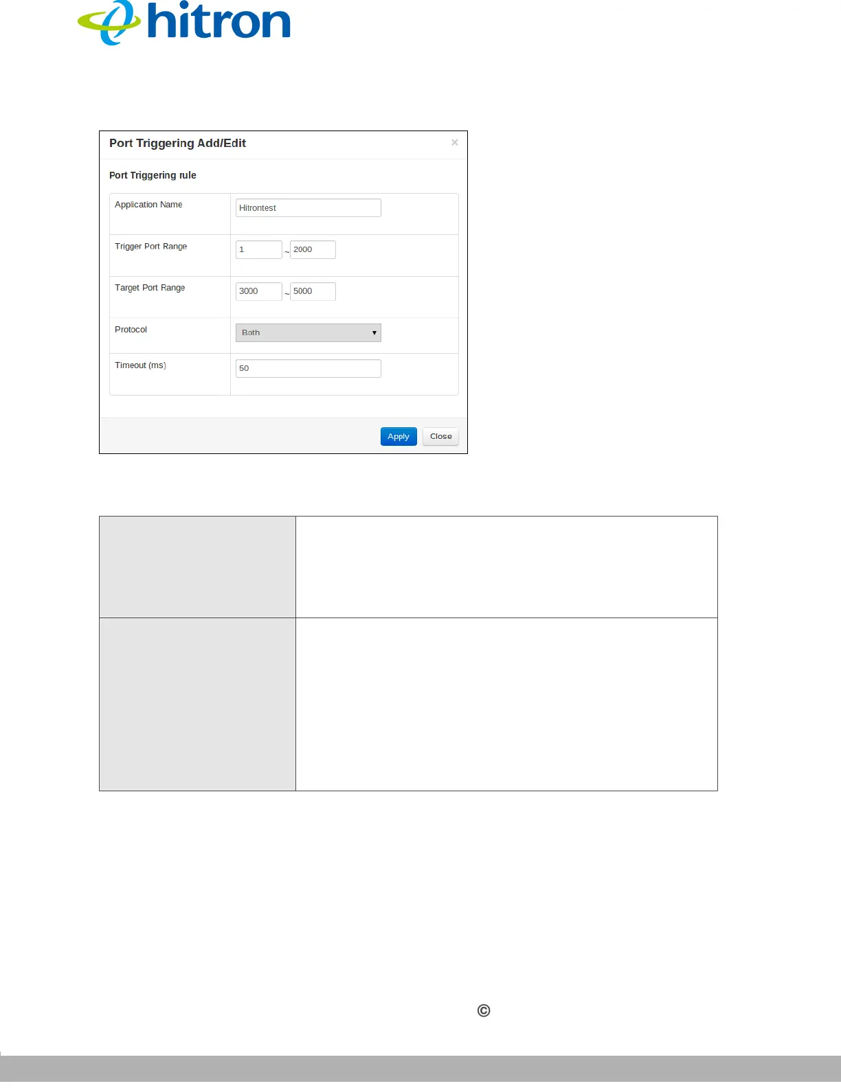 Trigger Port Range Use these fields to specify the trigger ports. When the