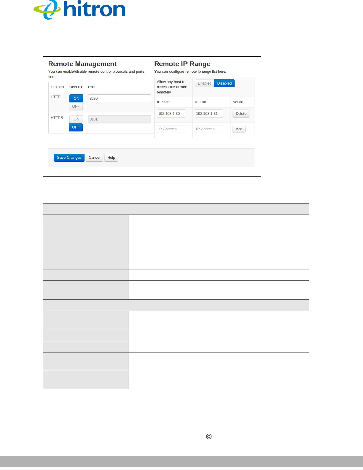 Table 30: The Admin: Remote Management Screen