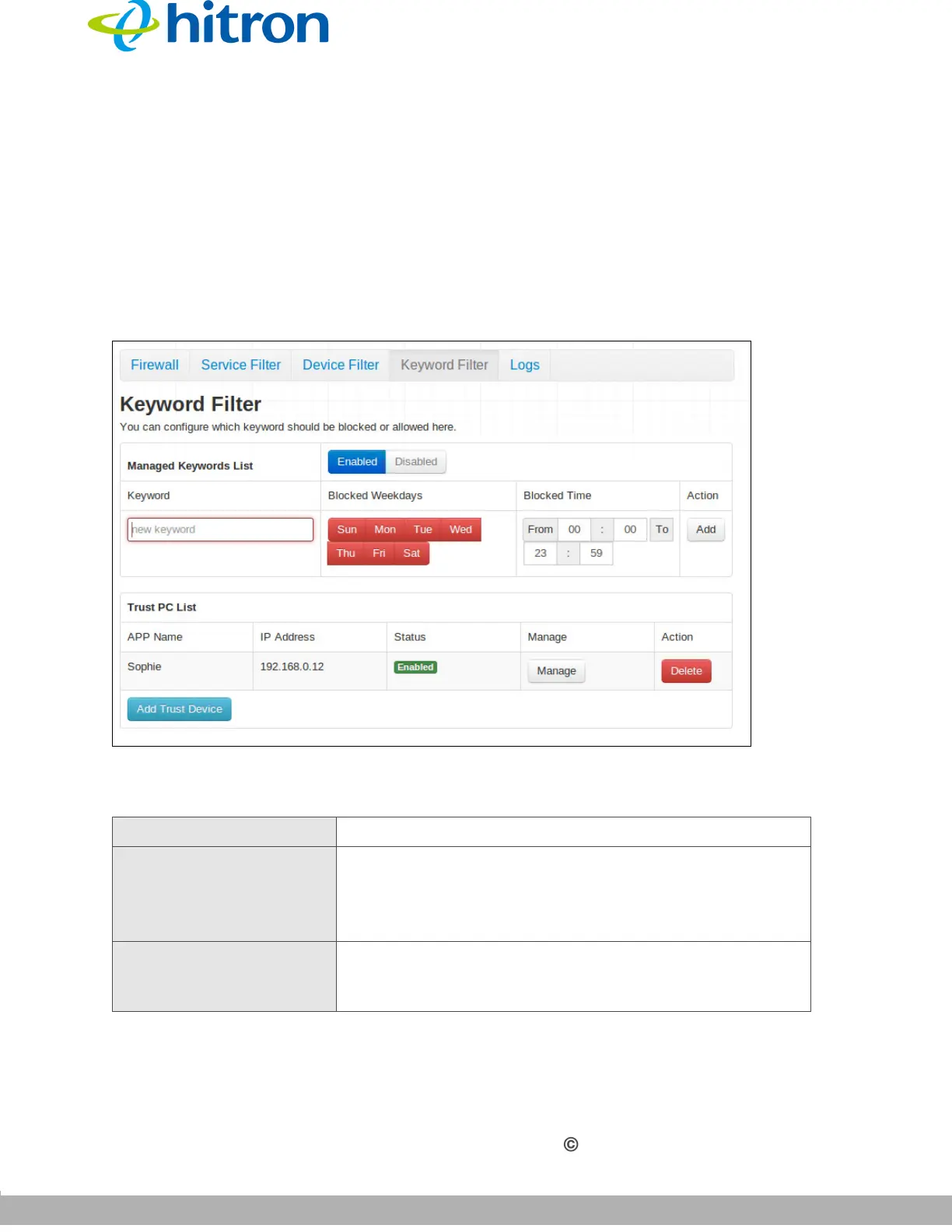 Table 40: The Security: Keyword Filter Screen