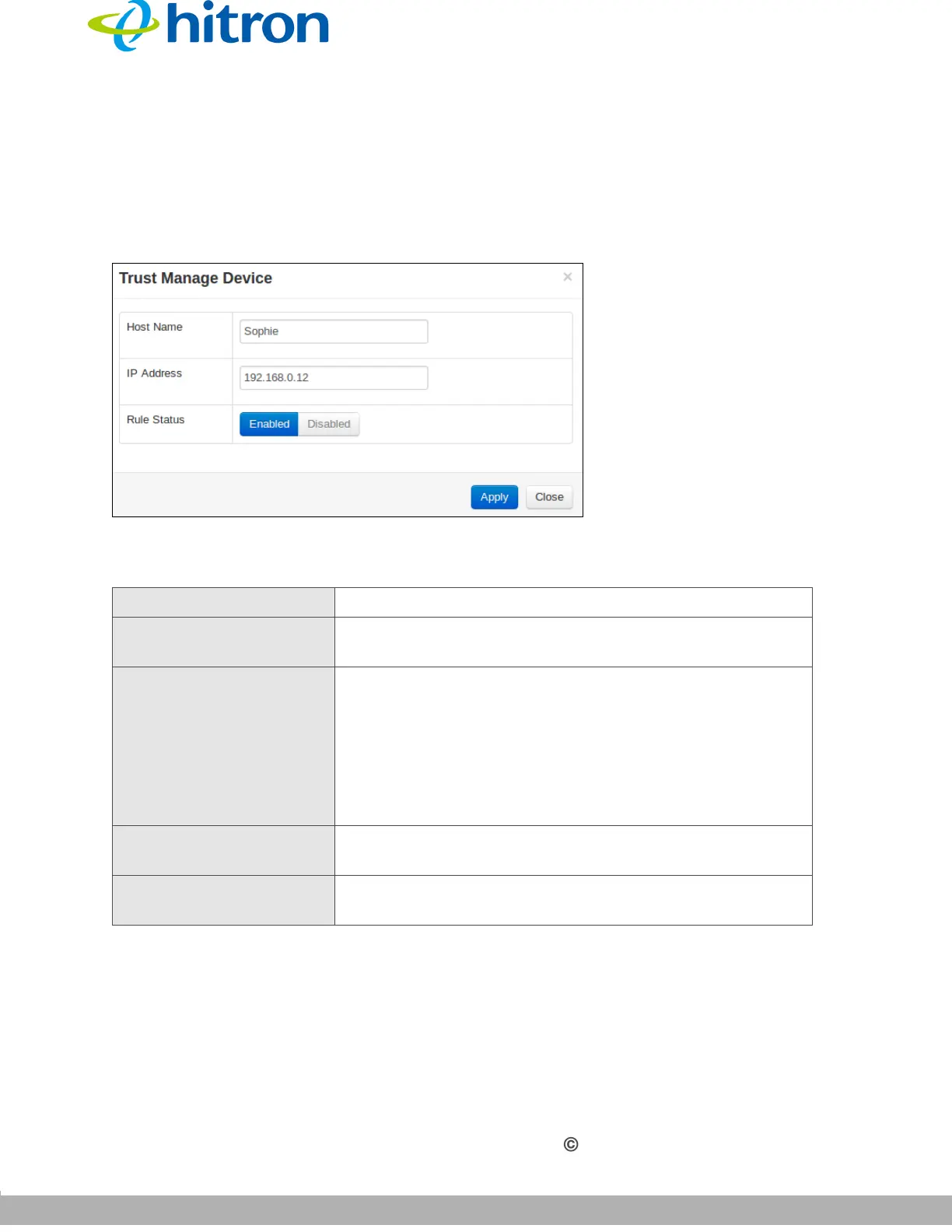 Table 41: The Security: Keyword Filter Add/Edit Trust Manage Device Screen