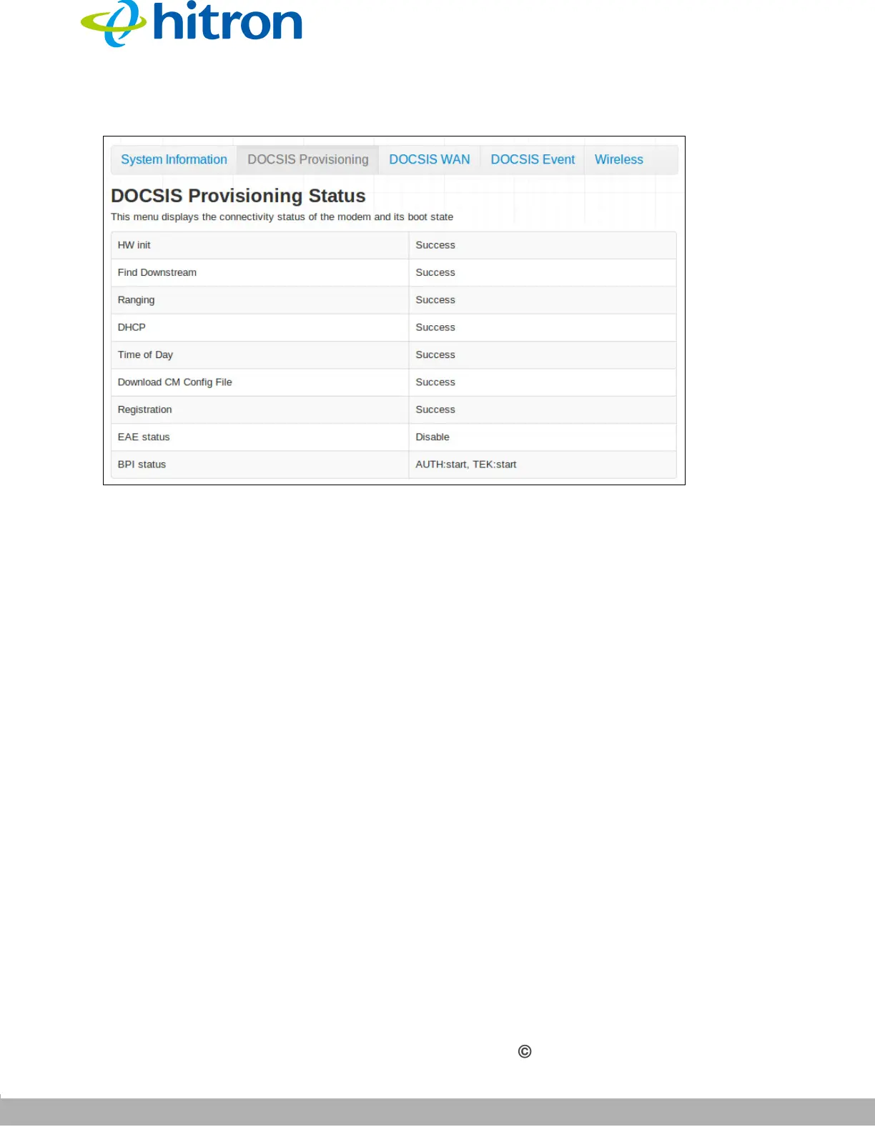 Figure 13: The Status: DOCSIS Provisioning Screen