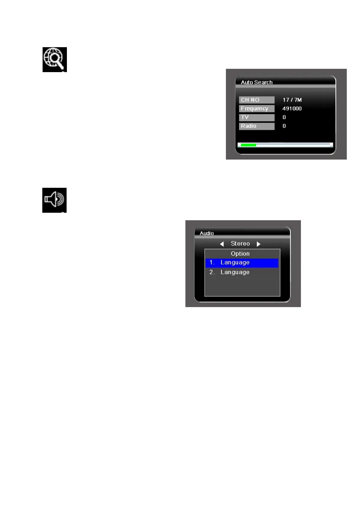 channel. Scroll the available language using [CH+]/[CH-] buttons. Press