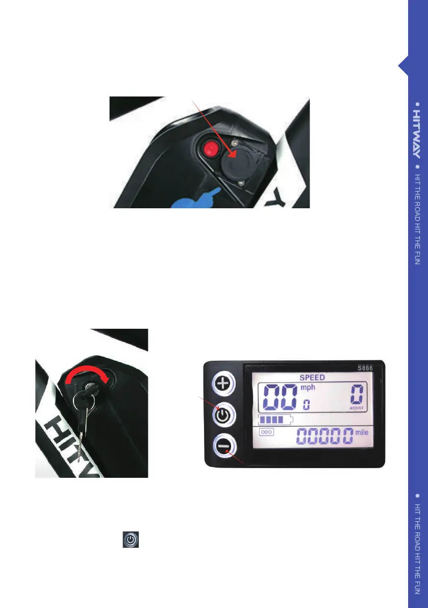 1. Charging: Unscrew the plastic cover on the battery (Picture 1), connect the charger to