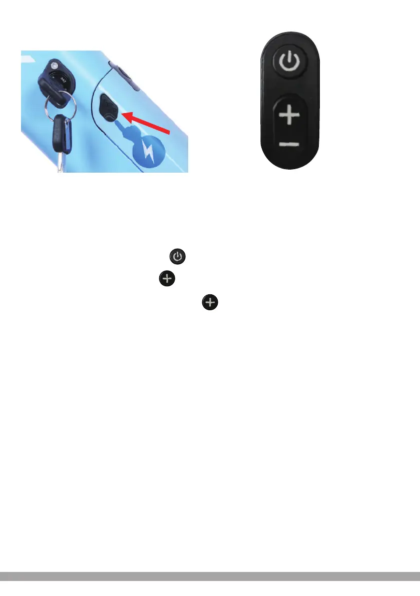 4. Start: bekrachtigd rijden, druk na inschakelen de knop kort in om naar 1e versnelling in te