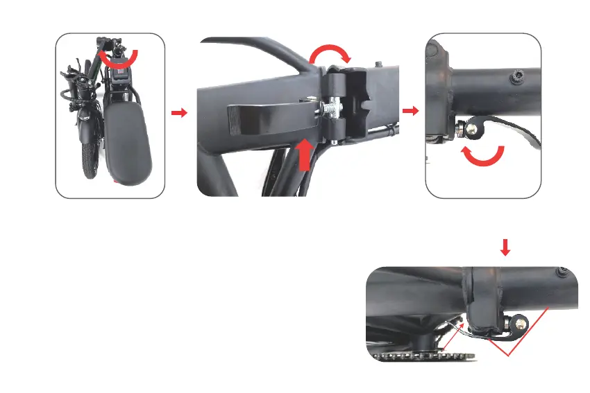 sur la poignée pliante du cadre selon le sens de la flèche