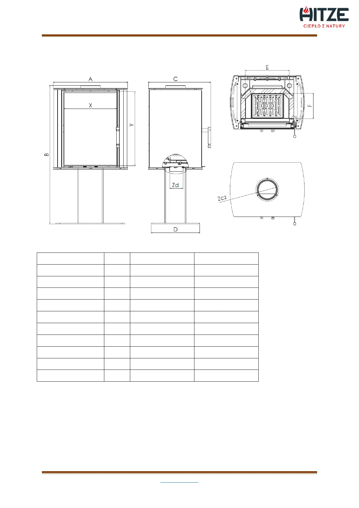Tab. 3. Freestanding stove dimensions LYNX
