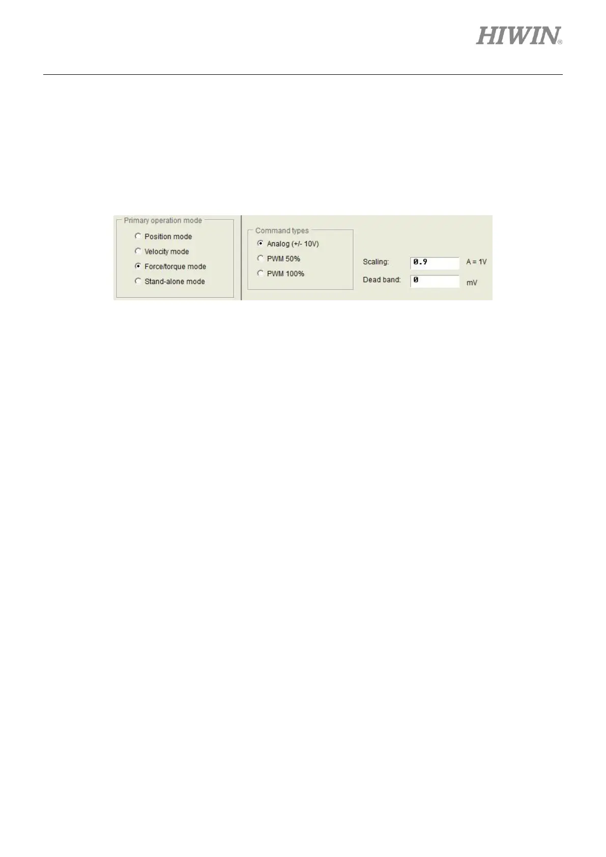 command is force/torque mode. The ratio (scaling) between external command and current can be