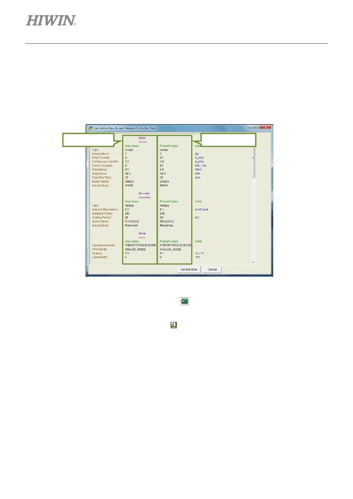 parameters are correct and click on Send to RAM button to save these parameters to the servo drive