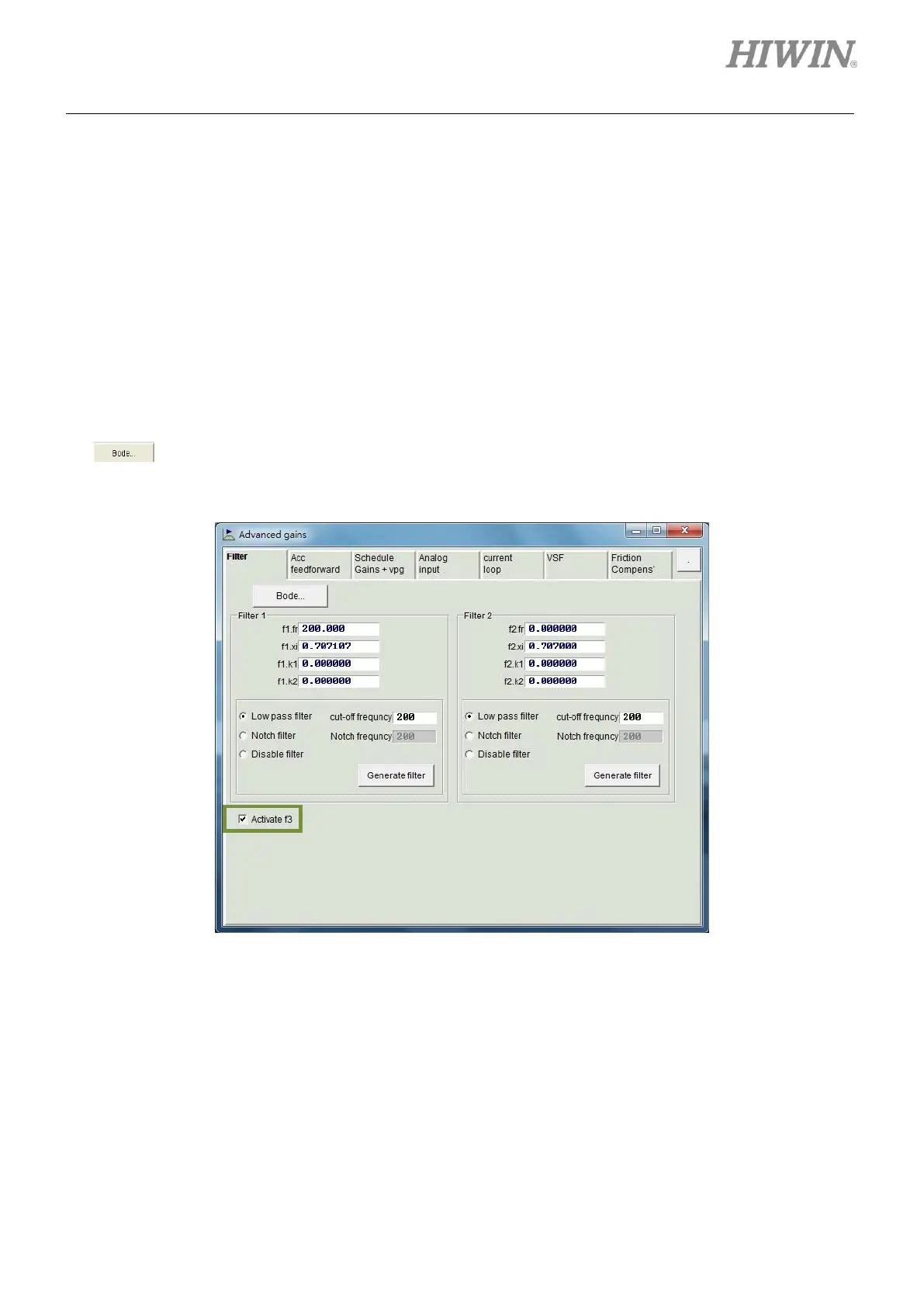 Frequency analyzer is commonly used to analyze system characteristics while configuring a filter. Click