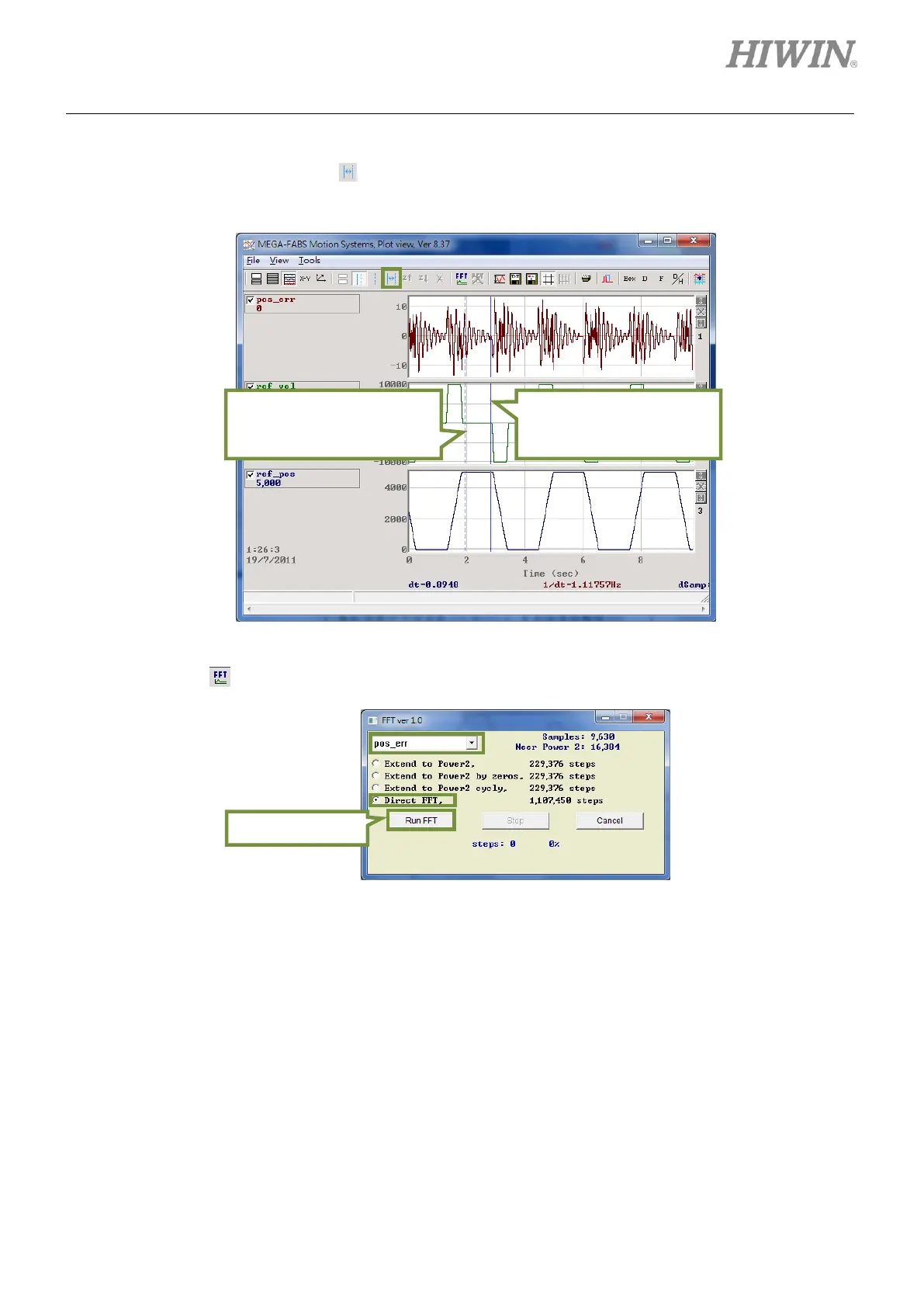 Step 4: As motion command completes, enlarge the graph of position error. Select the desired segment,