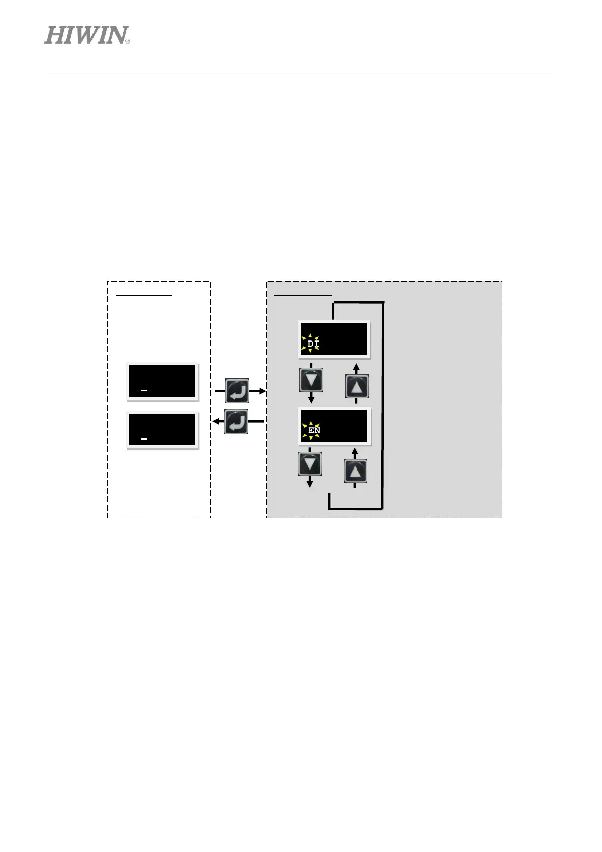 Step 1: Press Enter key to show ENA/DI (The static cursor is on the left of the second line.).