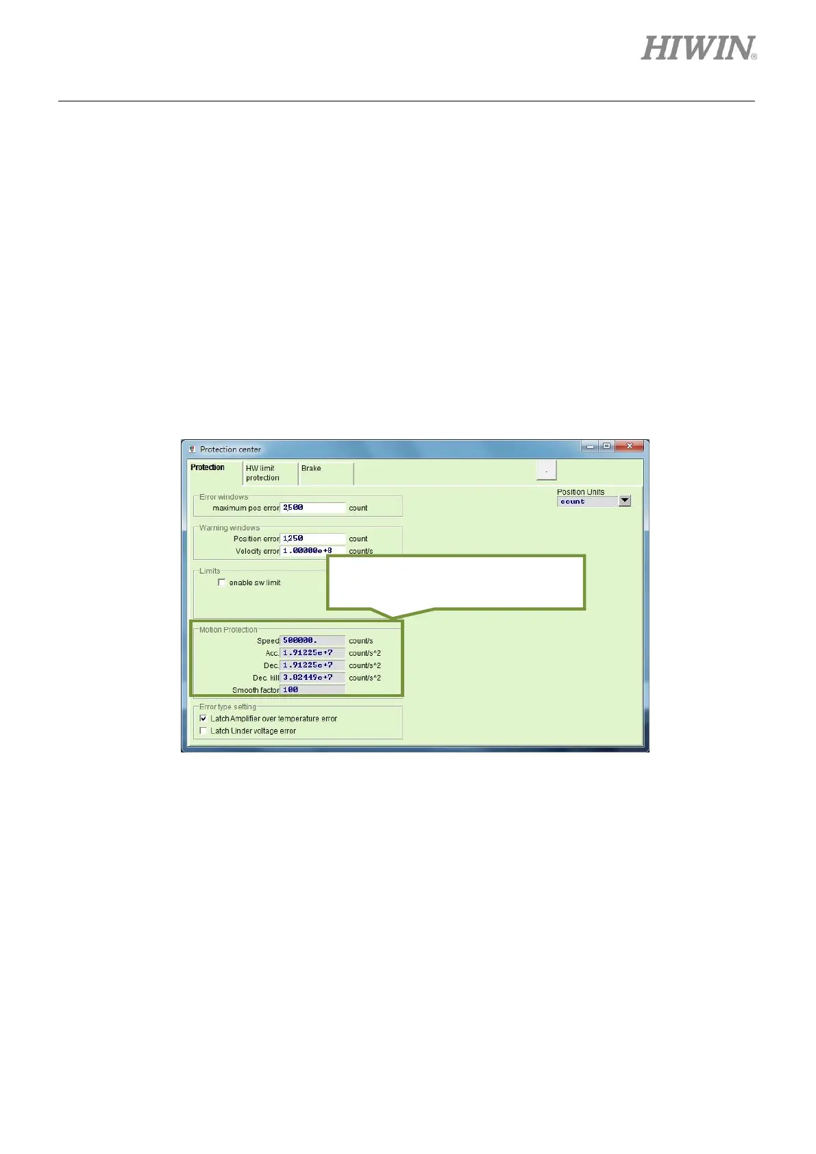 drop-down list of Position units. In addition to motion protection, these settings are also used for