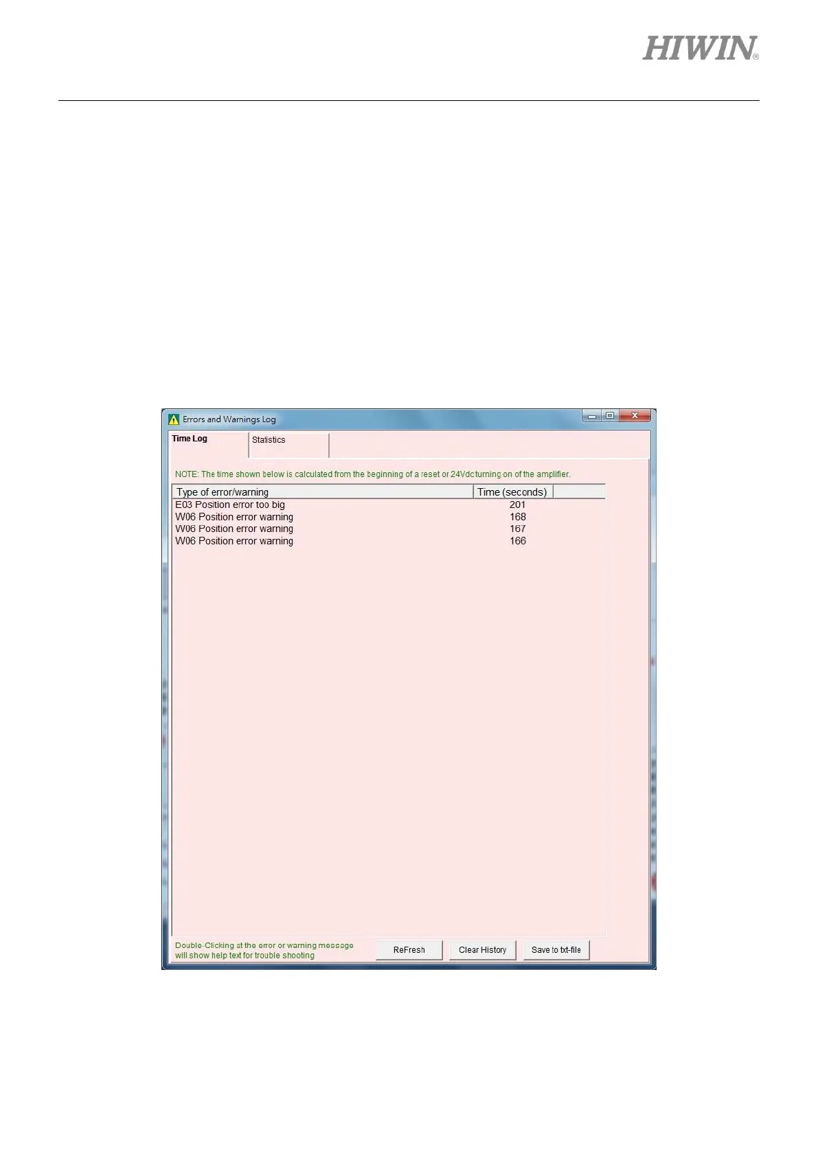 warnings occur after power on are recorded in time sequence. The time when each error or warning