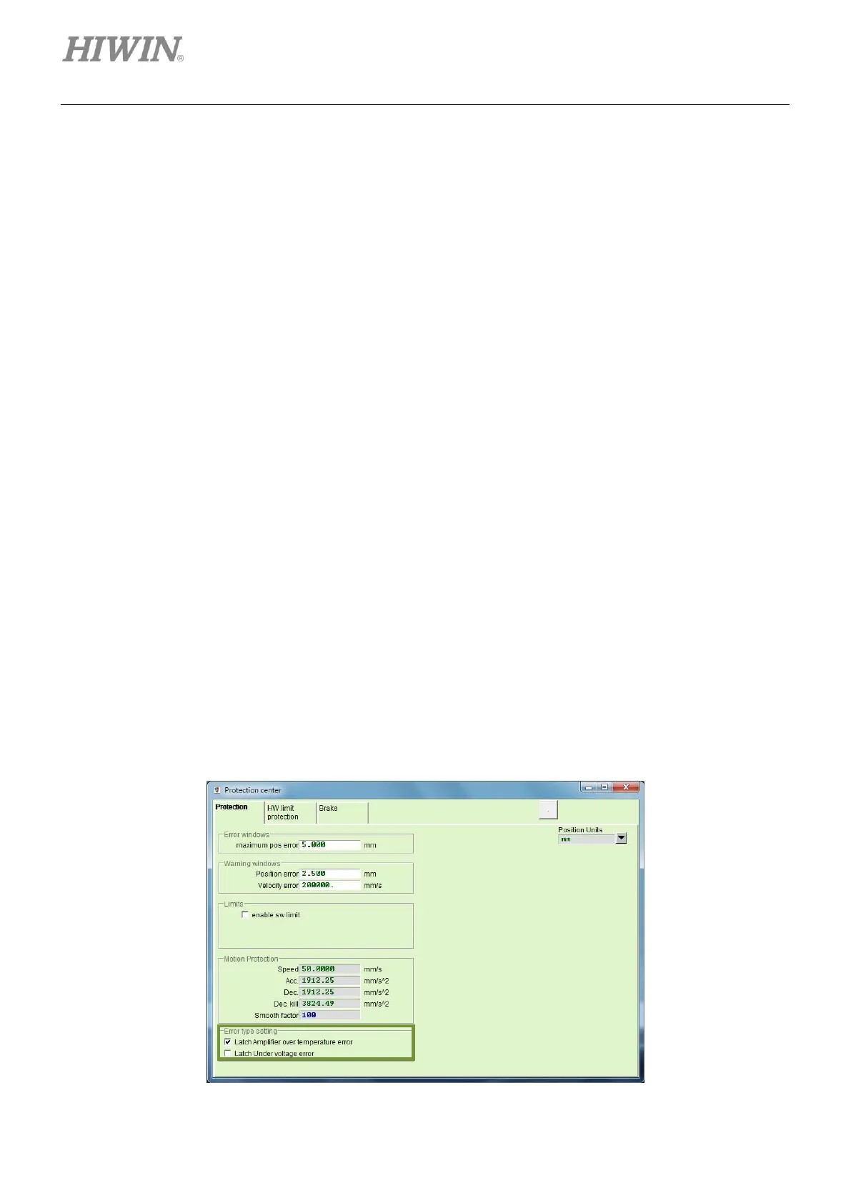 type setting, as figure 9.3.1. Check the checkbox of Latch Amplifier over temperature error or Latch