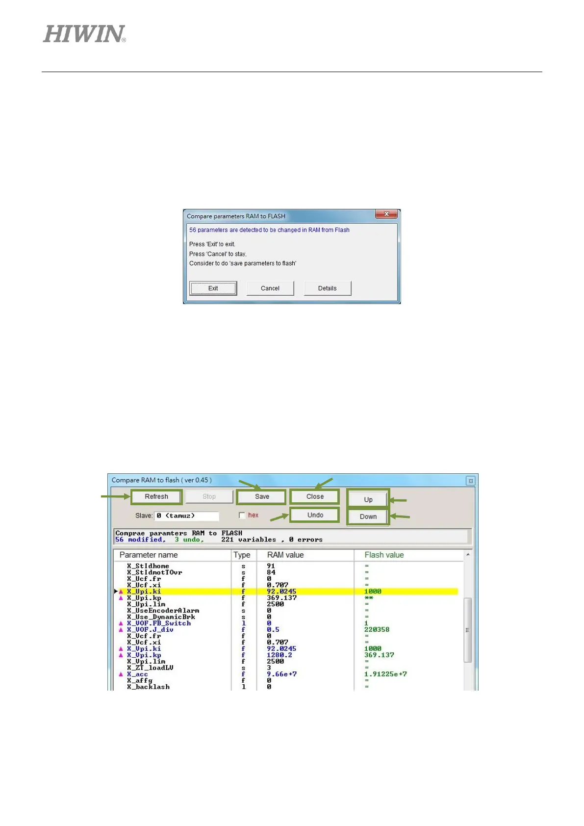 settings in RAM and Flash. If the settings in RAM and Flash are not identical, the parameter and its value