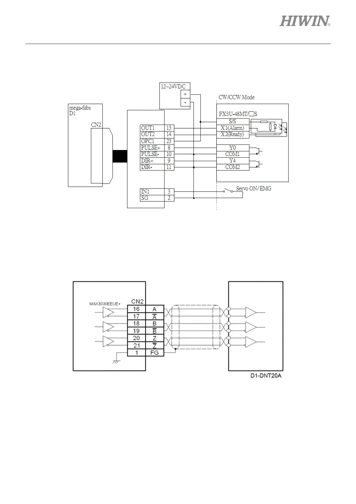 (2) In the figure below, Mitsubishi PLC FX3U-48MT/□S is used as the example for the wiring