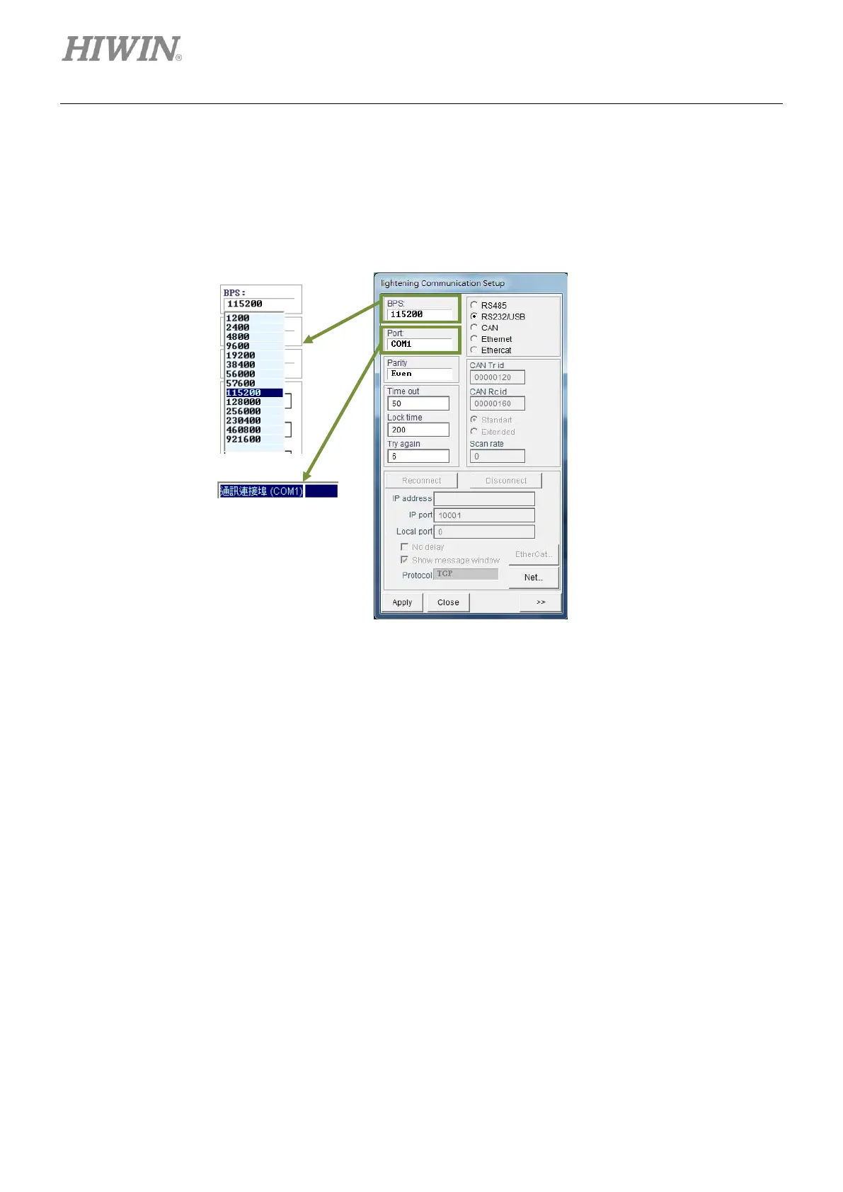 The communication setting window is shown as figure 5.1.2.2. In lightening Communication Setup