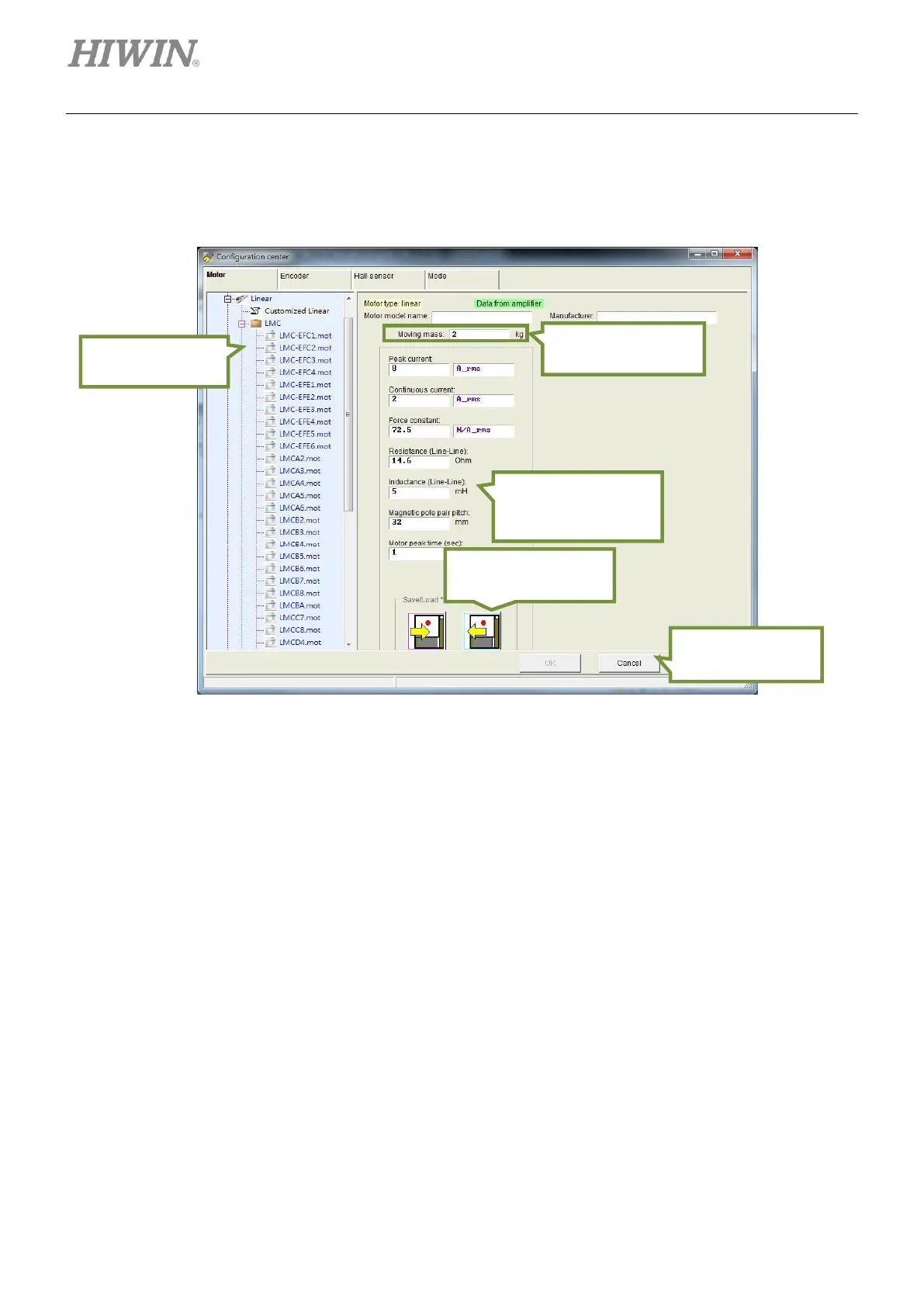 commonly-used encoder parameters of HIWIN motors are already listed. User can also input parameters