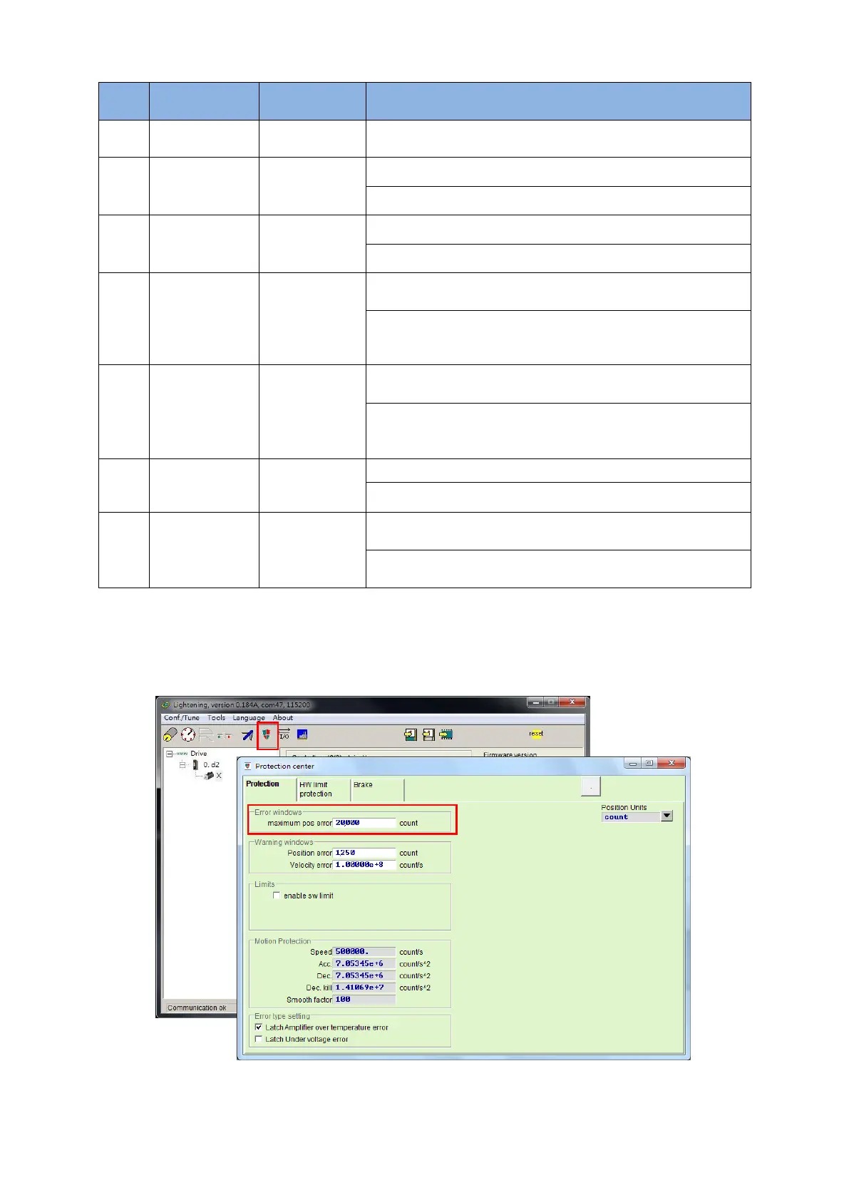 (2) It is not recommended to set the position error higher than the default value. If “E03