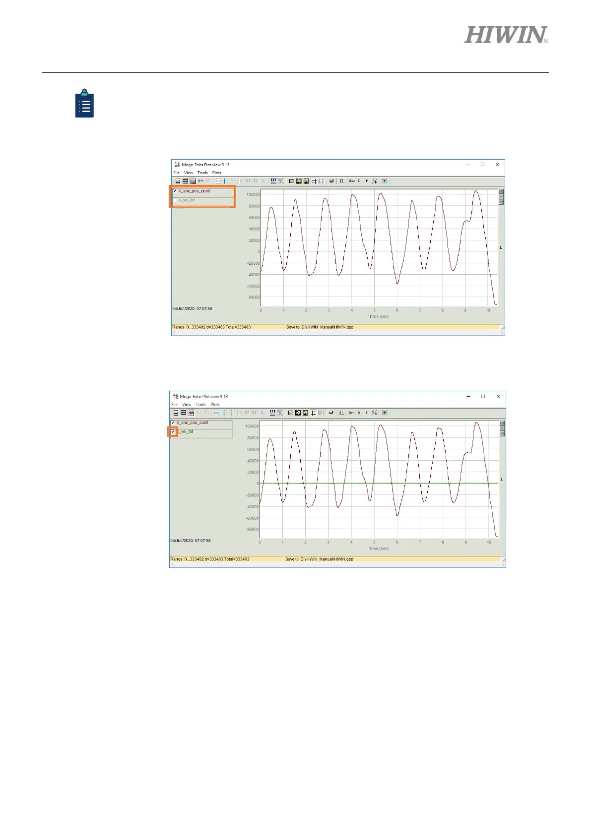 (2) To observe two waveforms at the same channel, check the box in front of the variable.