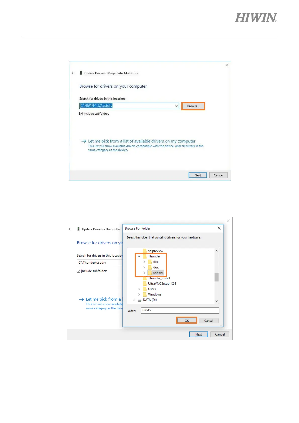 5. Select C:\Thunder\usbdrv as the path where Thunder USB driver exists, and click OK.