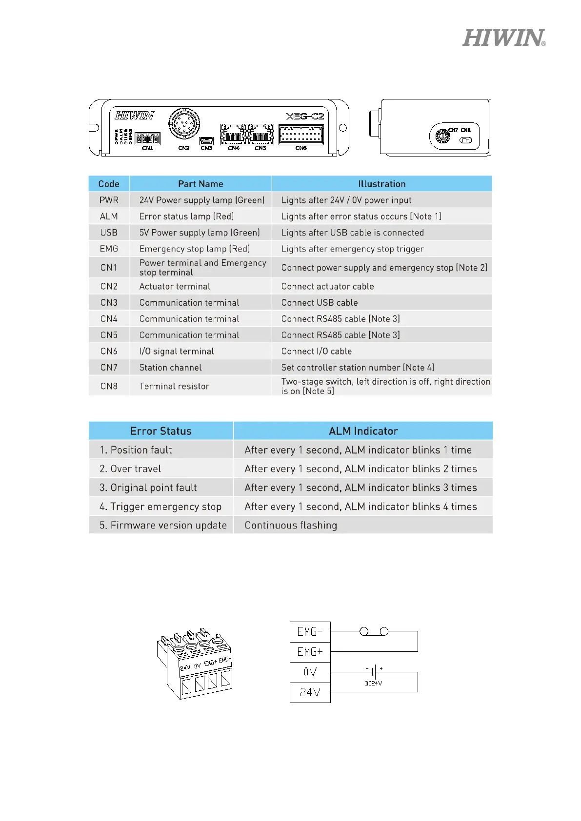[Note 2] The description and wiring diagram of the power connector are as follows. When EMG + and EMG-