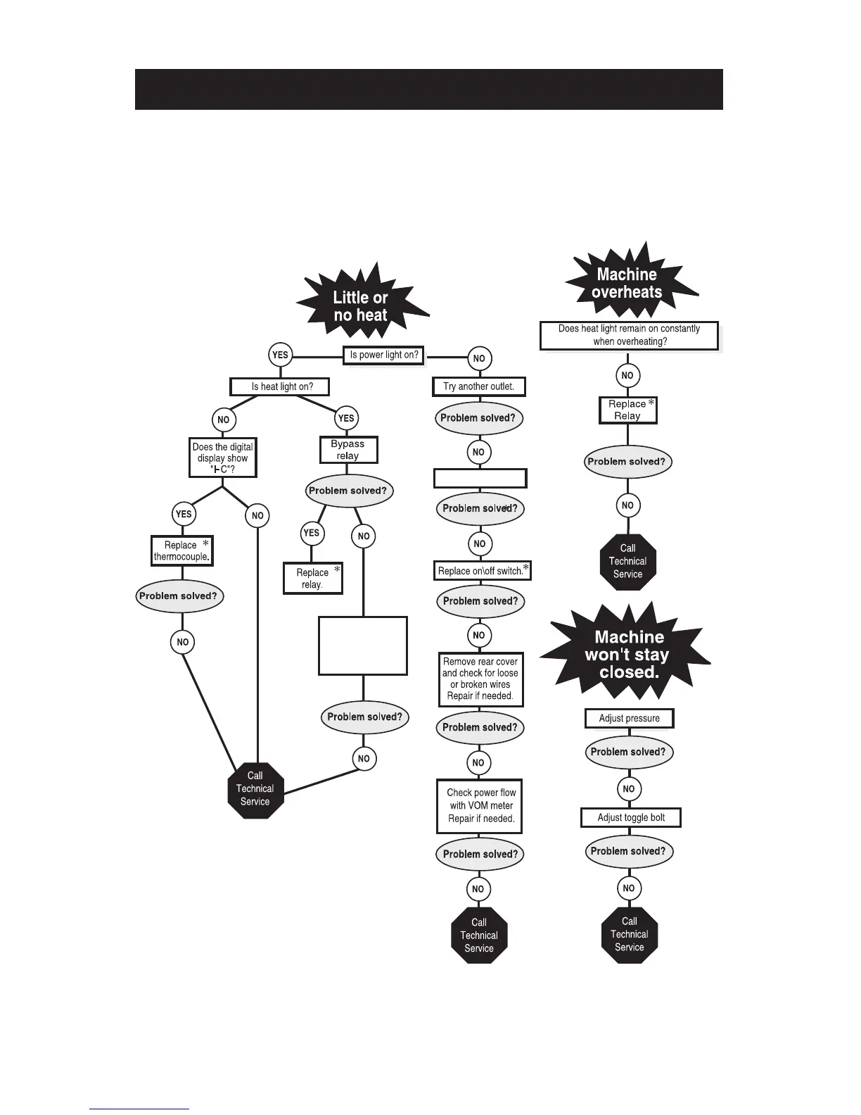 Hix HT-400 - troubleshooting-diagnostics; no-heat-troubleshooting; machine-overheating-troubleshooting; machine-wont-stay-closed-troubleshooting
