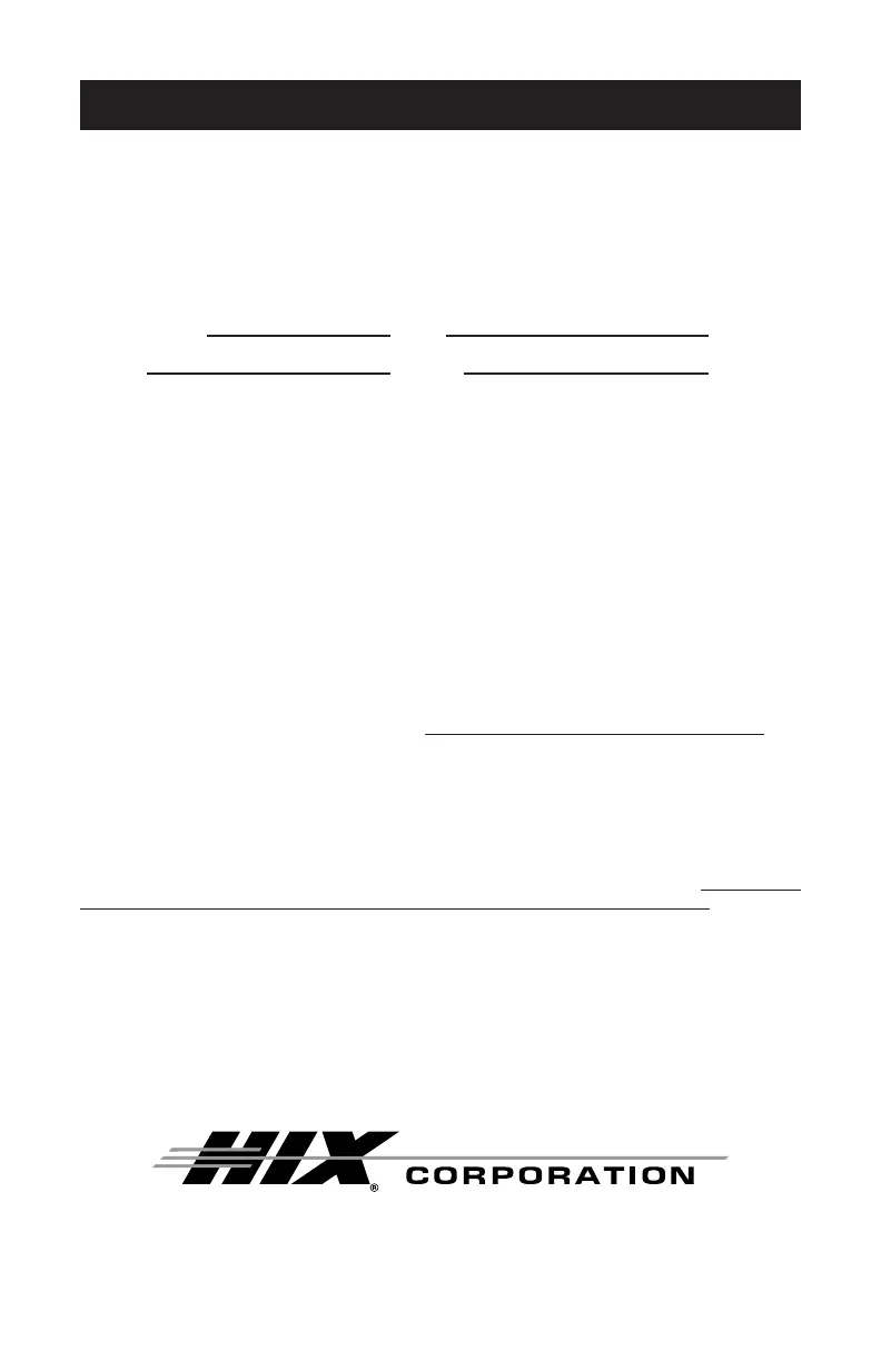 E-Mail: customerservice@hixcorp.com • E-Mail: sales@hixcorp.com