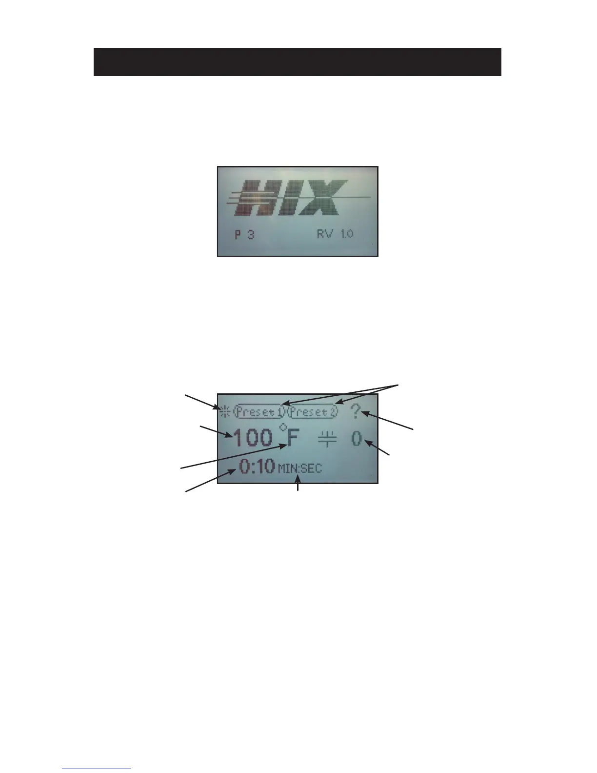 P 1 for °F, P 2 for °C and software revision RV 1.0)