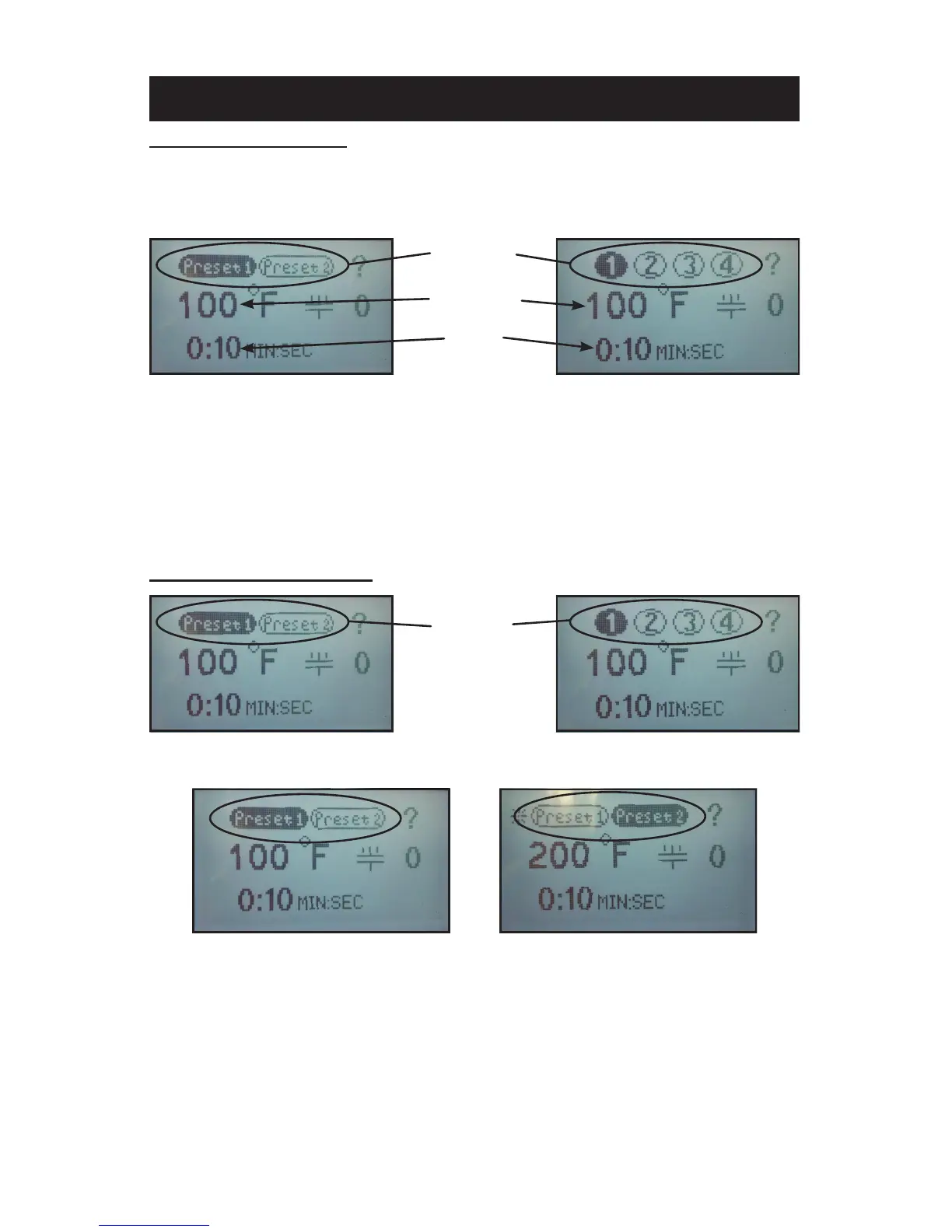NOTE: The factory default settings for all presets is set to 200°F and 10