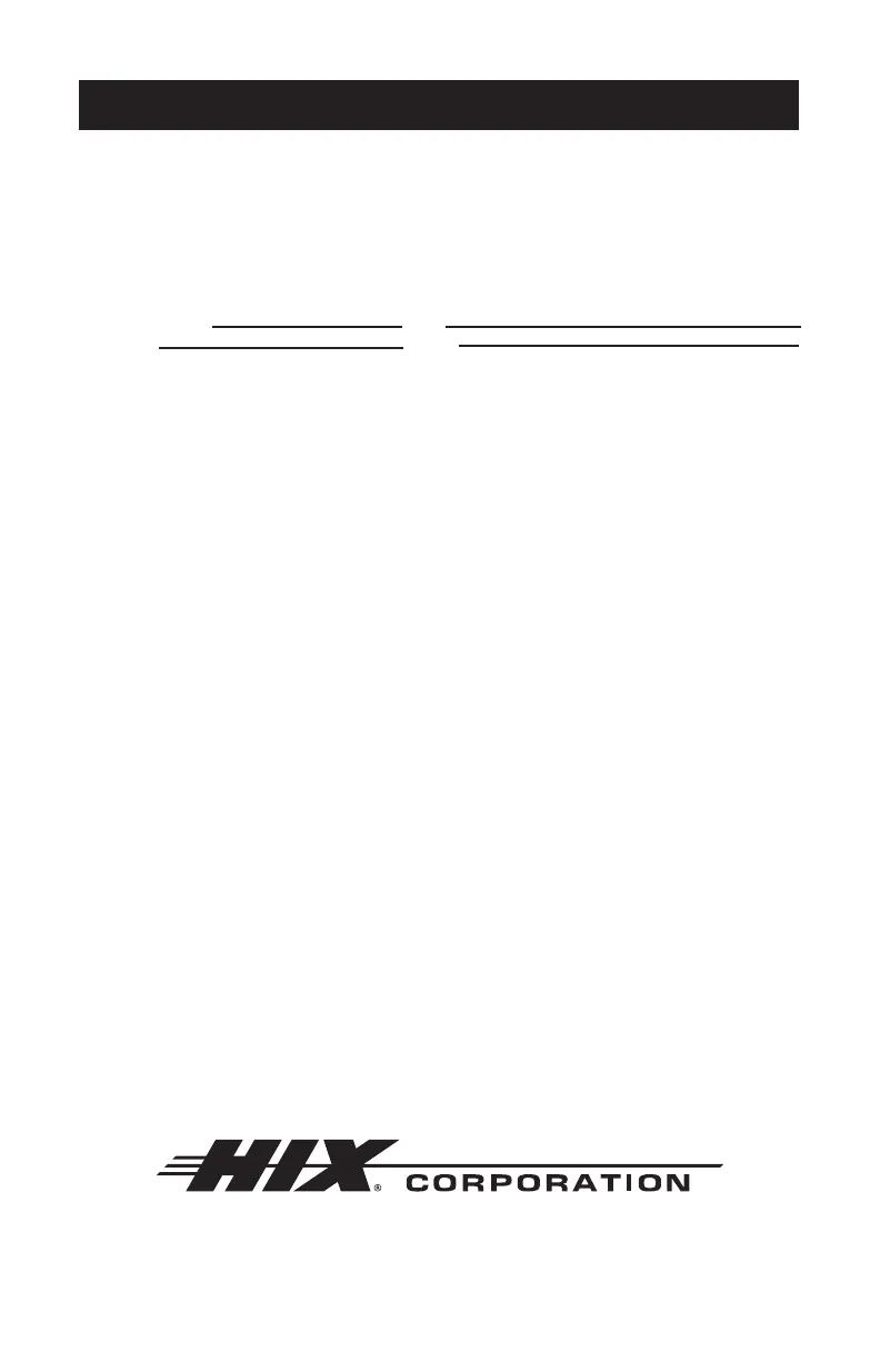 Inthecaseofaproblemwiththeequipmentidentiedherein,HIXCorporationshouldbecontactedduring