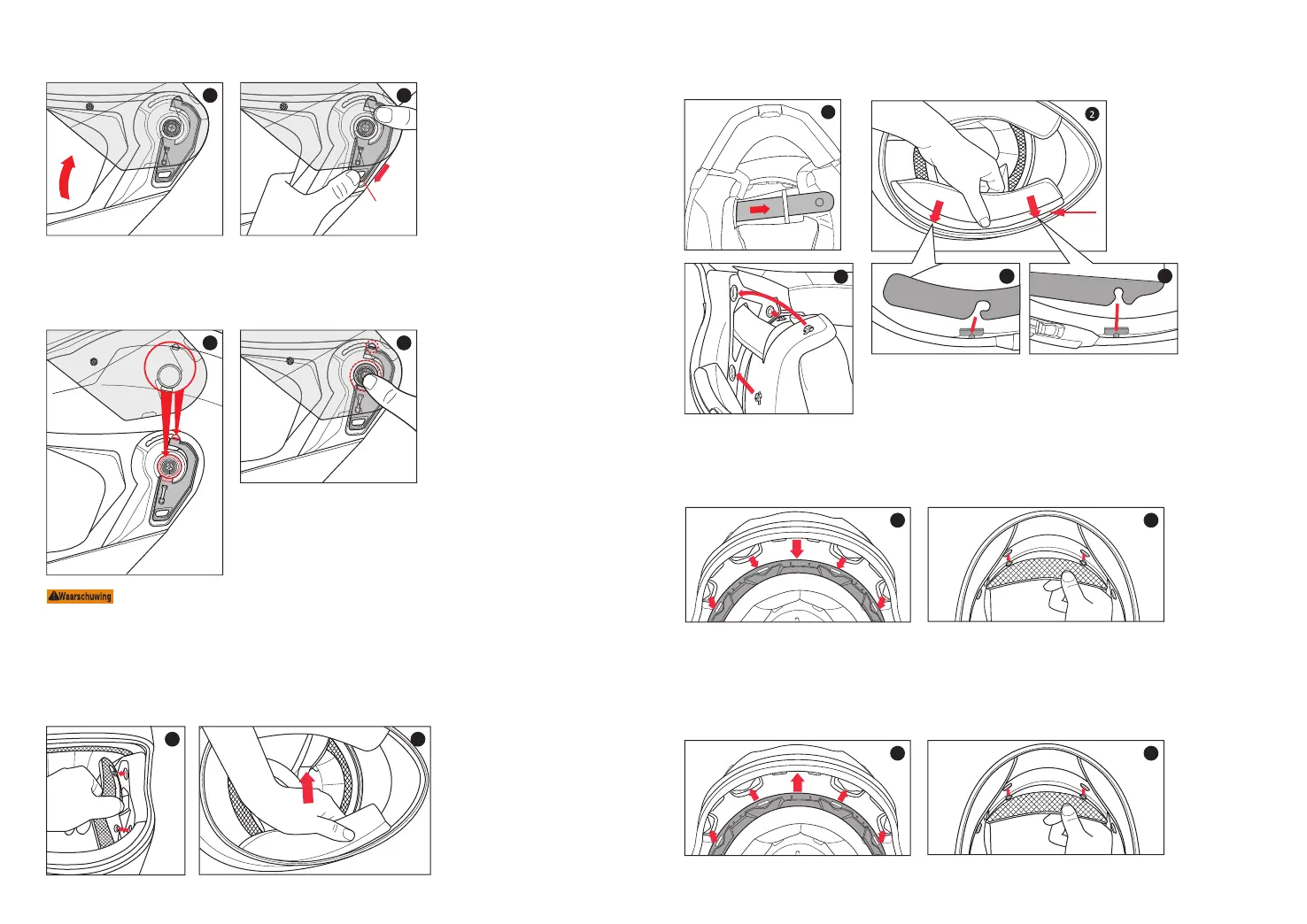 Controleer altijd alvorens u de helm in gebruik neemt of de helmkussentjes geïnstalleerd zijn. Een helm met
