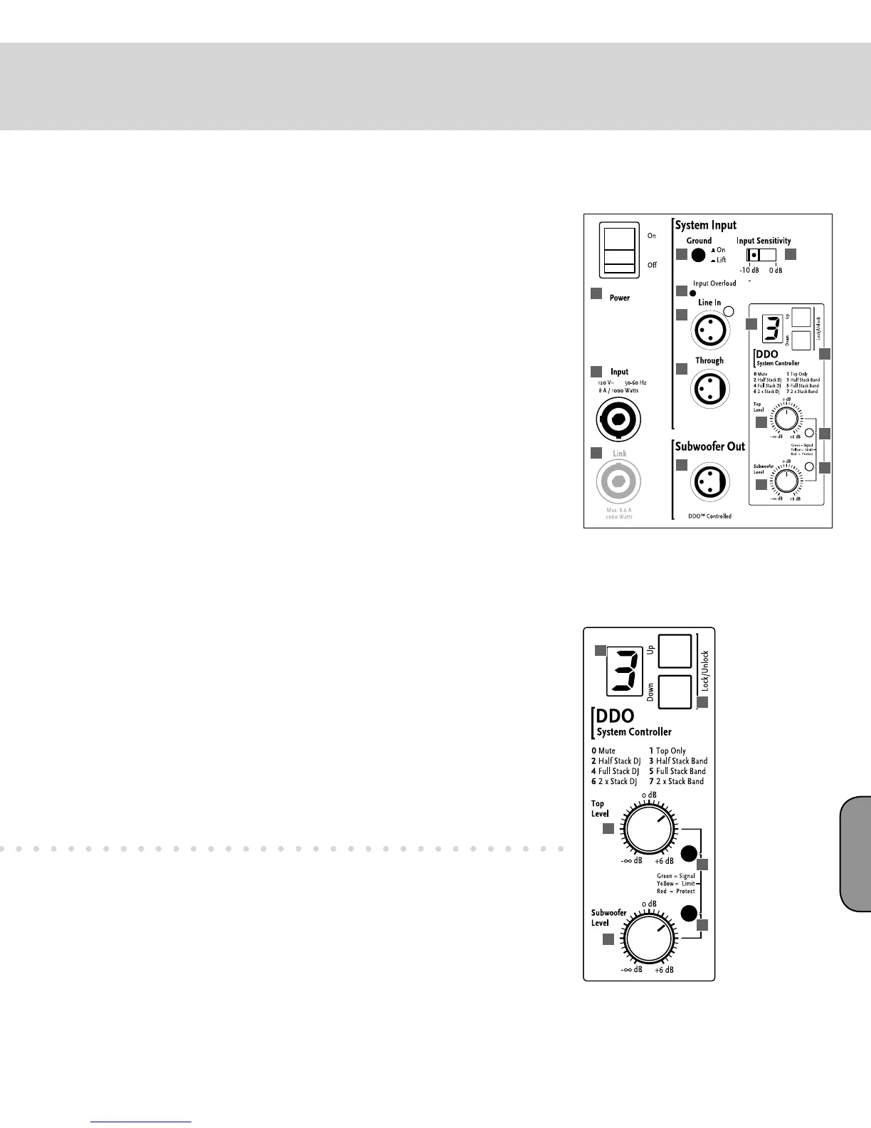power amps. Yellow indicates that the system is