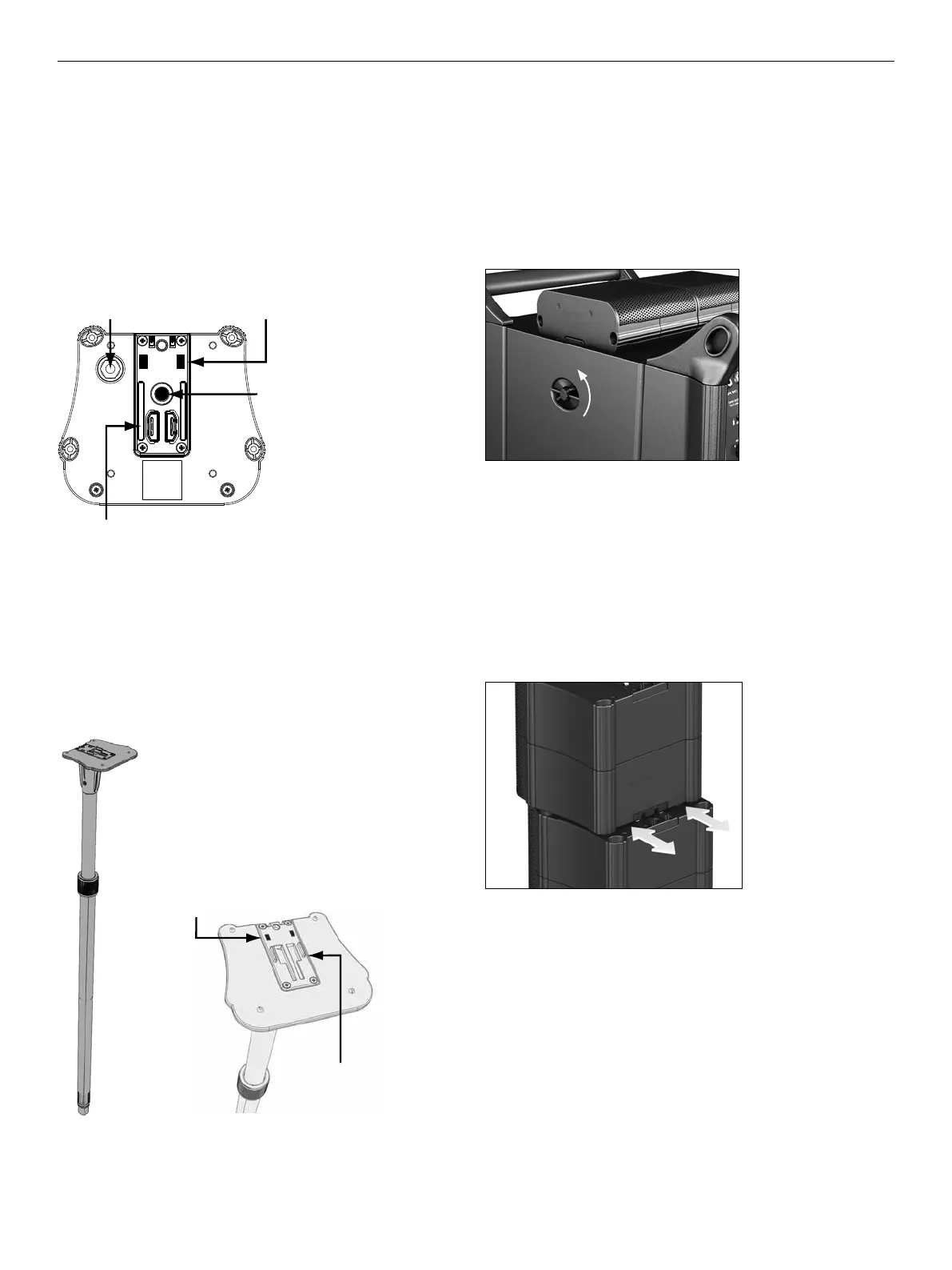T-grips on both sides to unlock the spring-mounted locking pins. Remove