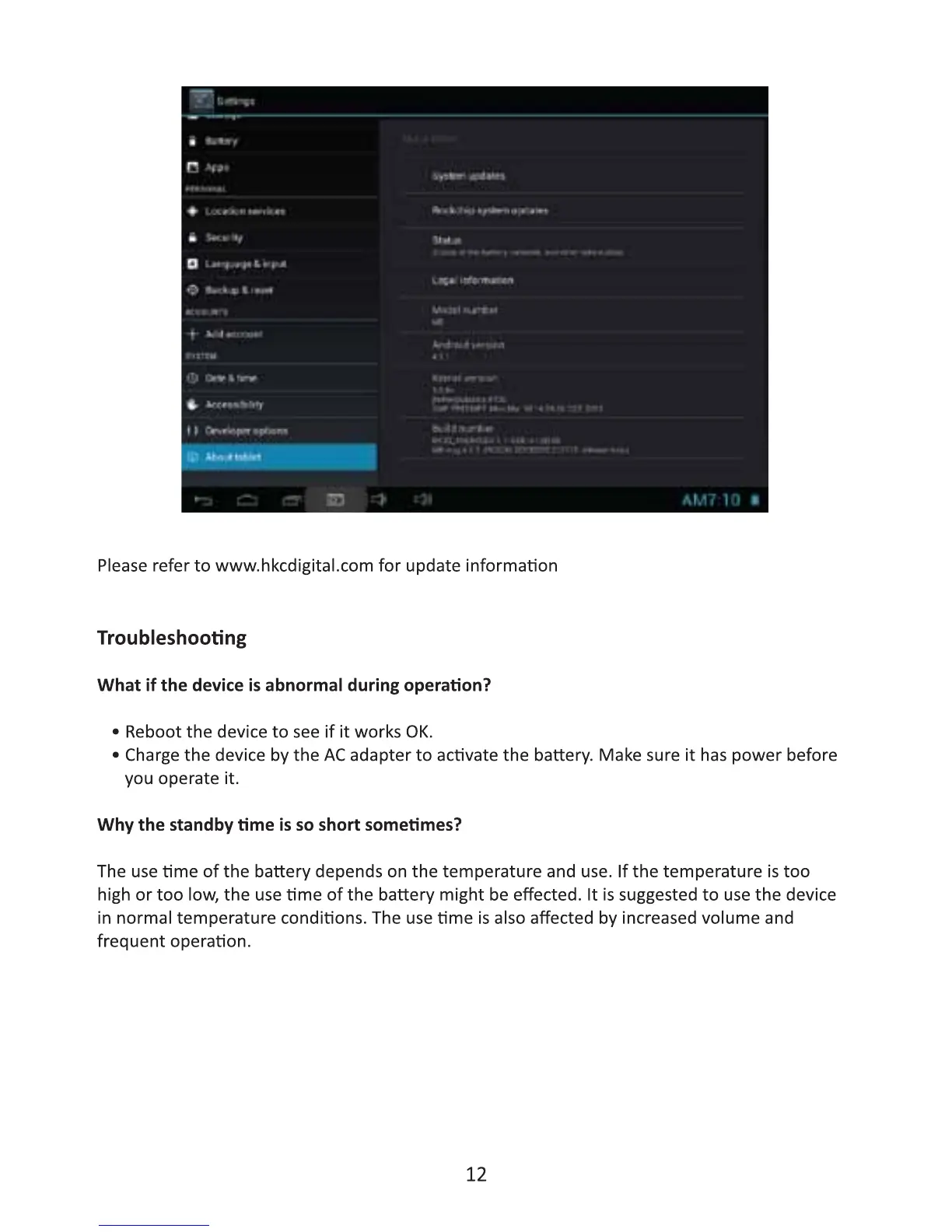 HKC P774A - Troubleshooting and Support; Troubleshooting Device Issues; Battery Standby Time Explanation
