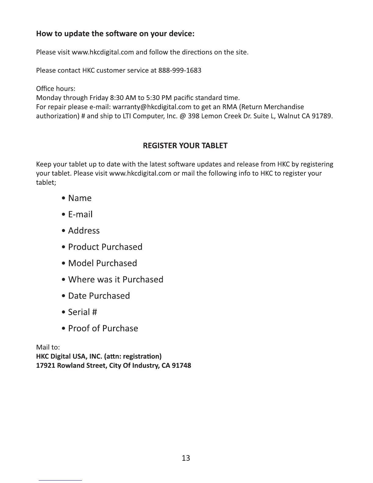 HKC P774A - Software Update Information; Registering Your Tablet