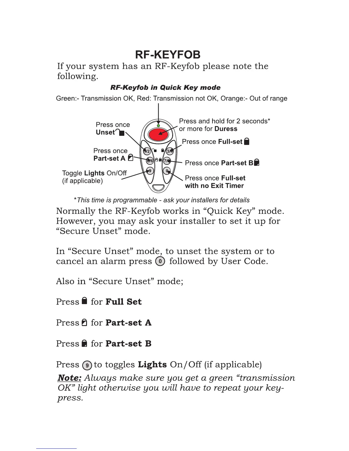 HKC Quantum70 - RF-KEYFOB; RF-Keyfob in Quick Key mode; Secure Unset mode