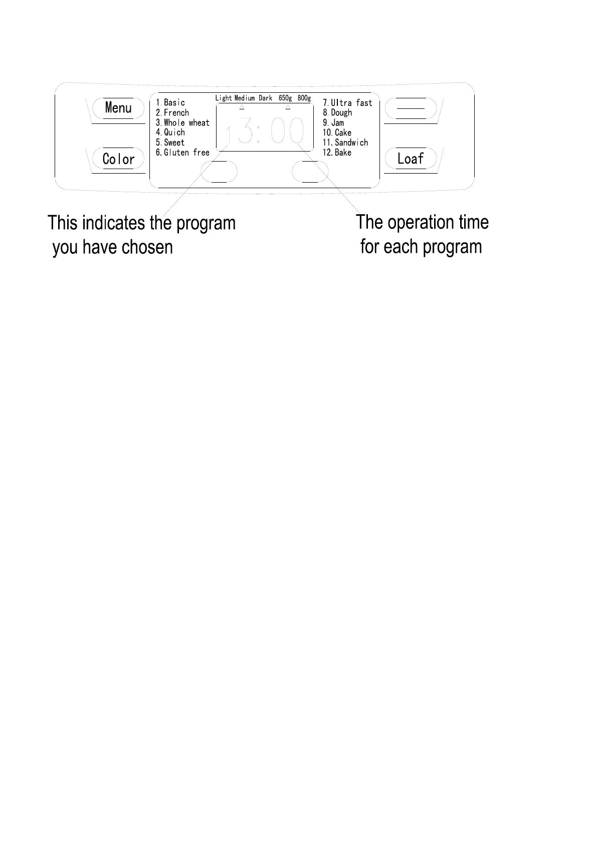 As soon as the bread maker is plugged into the power supply, a beep will be heard and “3:00”