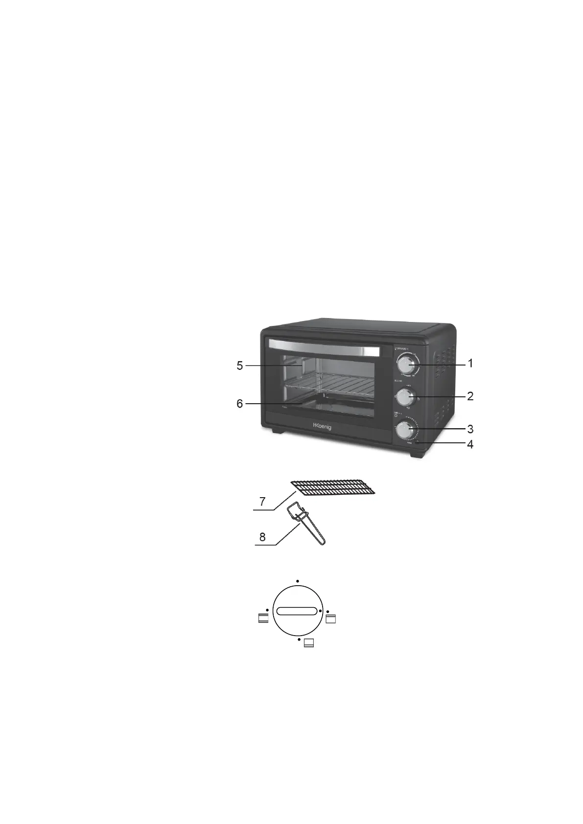 - Die Füße des Ofens können auf dem Tisch Spuren hinterlassen; falls dies passiert können die
