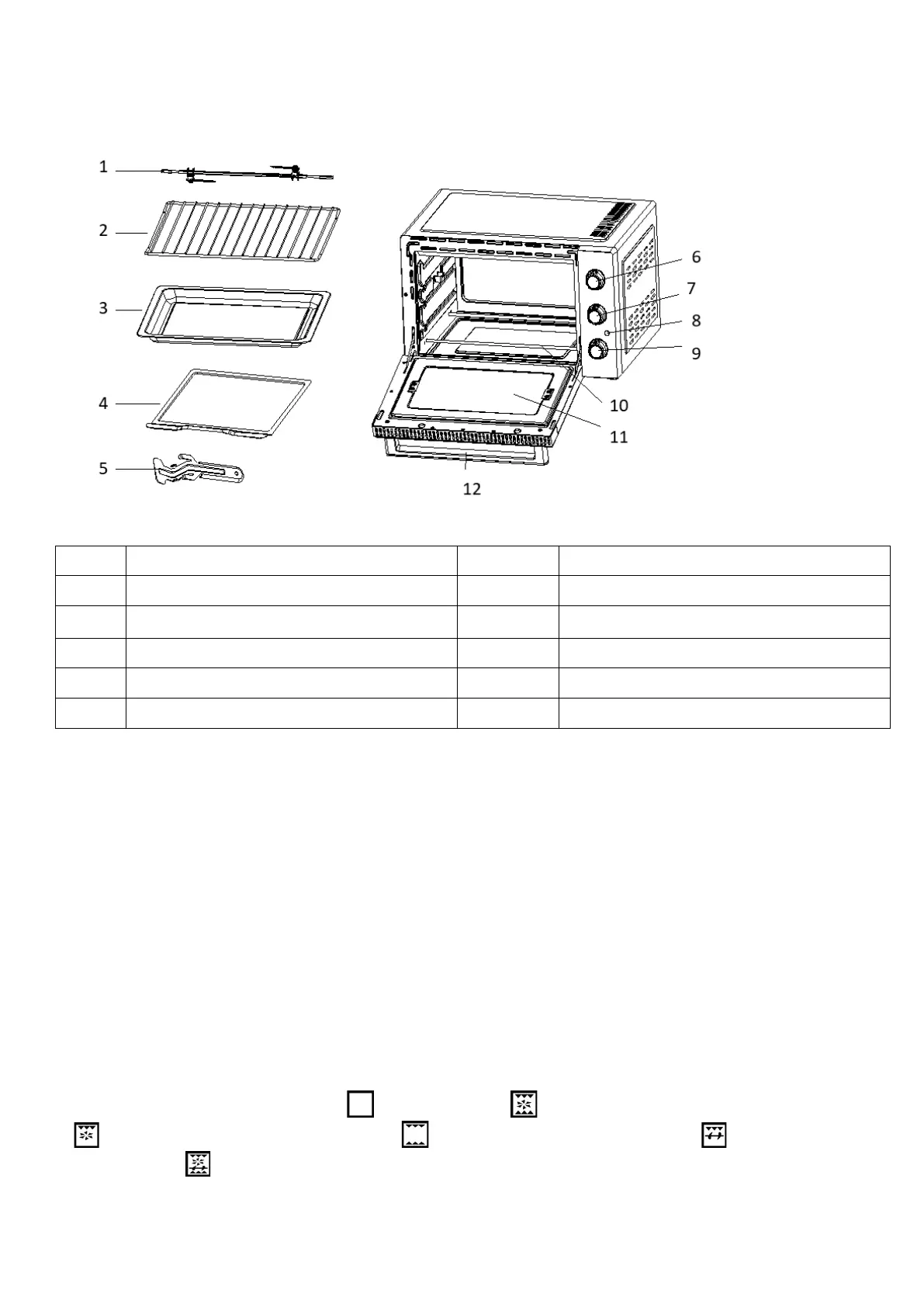 ⑧ Funktionsknopf: es gibt fünf Modi( Stand-by-Modus, Konvektion + obere und untere Heizelemente,