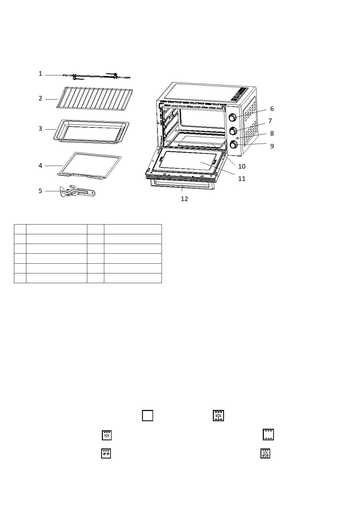 verwarmingselementen, rotisserie + bovenste verwarmingselementen, bovenste en onderste